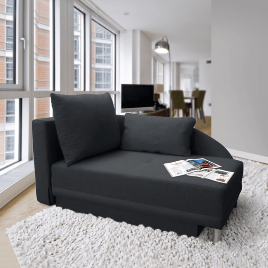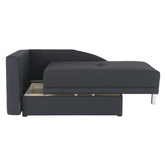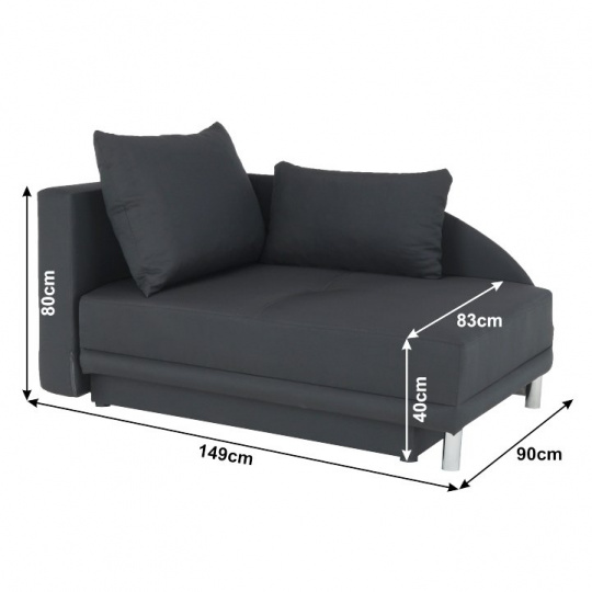 ;"Rozkládací pohovka s úložným prostorem, levá, LAUREL Materiál: látka Oděruodolnost textilie podle testu Martindale: 70 000 oděrek Barva: šedočerná Rozměry (ŠxHxV): 149x90x80 cm Plocha na spaní (ŠxD): 80x195 cm Výška sedu: 40 cm Hloubka sedu: 83 cm Výška spodního prostoru od podlahy: 10 cm Dva polštáře. Nosnost na osobu: 90 kg Dodávané v demontu. Možnost objednání ve 3 barevných provedeních látky Haiti nebo v 6 barevných provedeních látky Cablo, v ceně: 10.290,-Kč, dodací lhůta 6-8 týdnů. Při individuální objednávce je třeba zaplatit 20% zálohu z dané částky. Po uhrazení zálohy bude Vaša objednávka zadána do výroby.