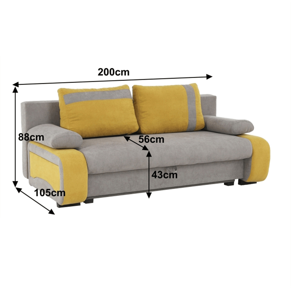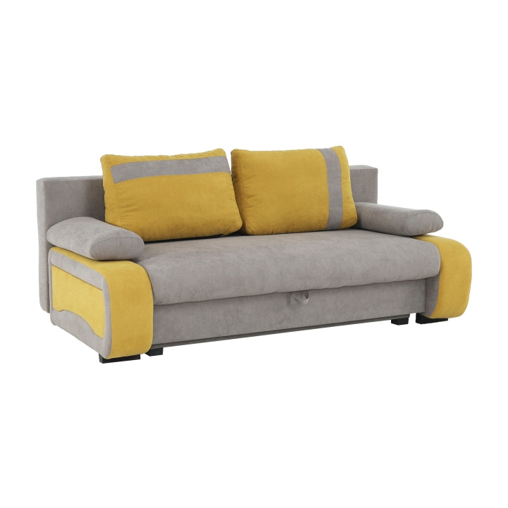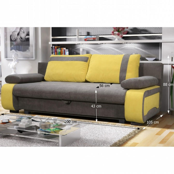 rozkládací pohovka s úložným prostorem BOLIVIA rozkládání AUTOMAT, kvalitní Bonelové sezení, vhodná pro každodenní spaní, materiál: látka Cosmic Oděruodolnost textilie podle testu Martindale: 65 000 oděrek barva: šedohnědá 808 / žlutá 715 rozměry ŠxHxV: 200x105x88 cm plocha na spaní ŠxD: 198x145 cm Nosnost na osobu: 90 kg