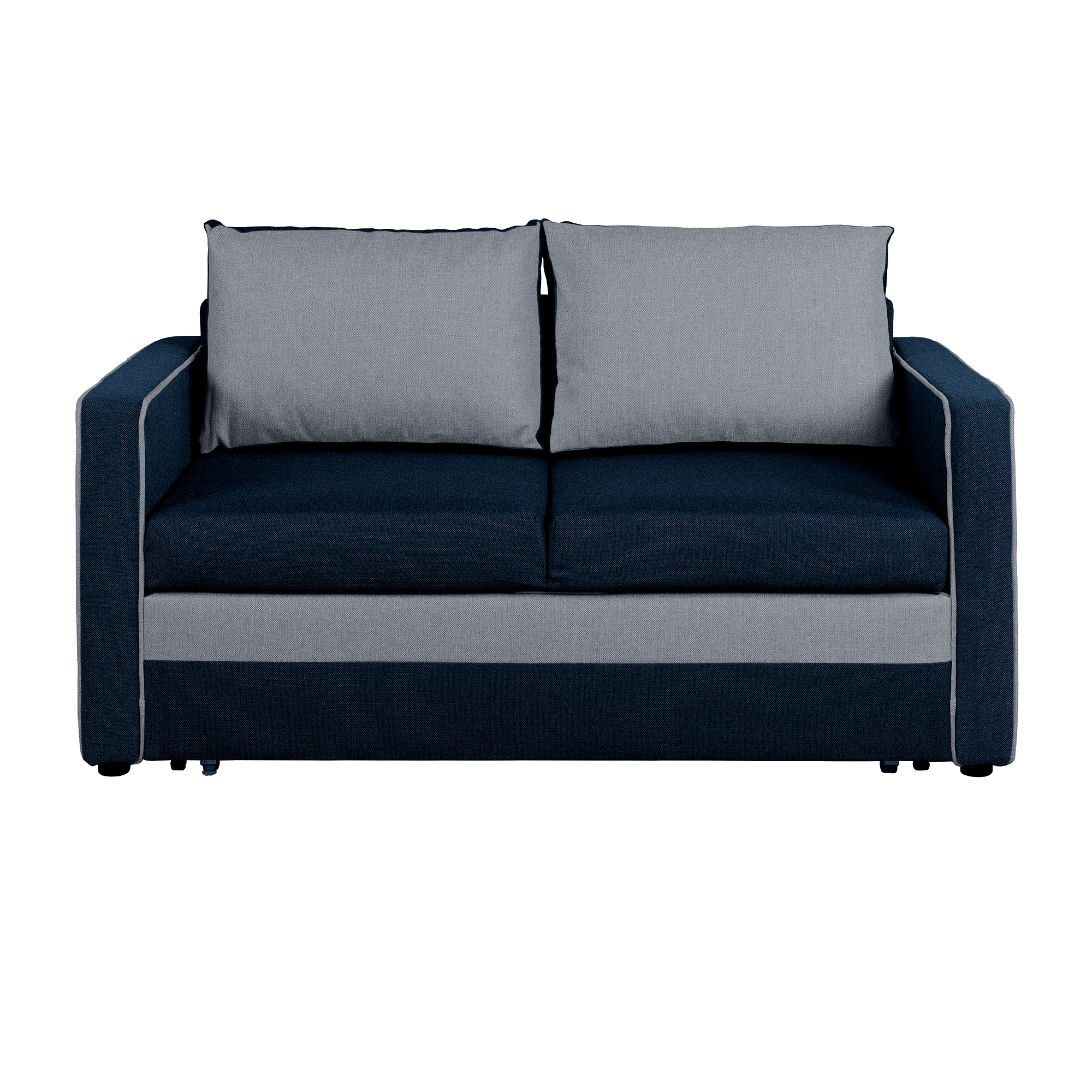 Materiál: látka Inari 72/80 Oděruodolnost textilie dle testu Martindale: 49 000 oděrů Barva: světle modrá/modrá Rozměry (ŠxHxV): 153x93x90 cm Výška sedu: 43 cm Hloubka sedu: 77 cm Plocha na spaní (ŠxD): 133x197 cm Plastové nožičky Výška spodního prostoru od podlahy: 2 cm Výška opěrky na ruku: 60 cm Výplň: bonel Celočalouněná Rozkládací S úložným prostorem S polštáři Rozměry polštářů (ŠxV): 64x44 cm Nosnost na osobu: 100 kg Praktická Moderní Dodáváno v monte