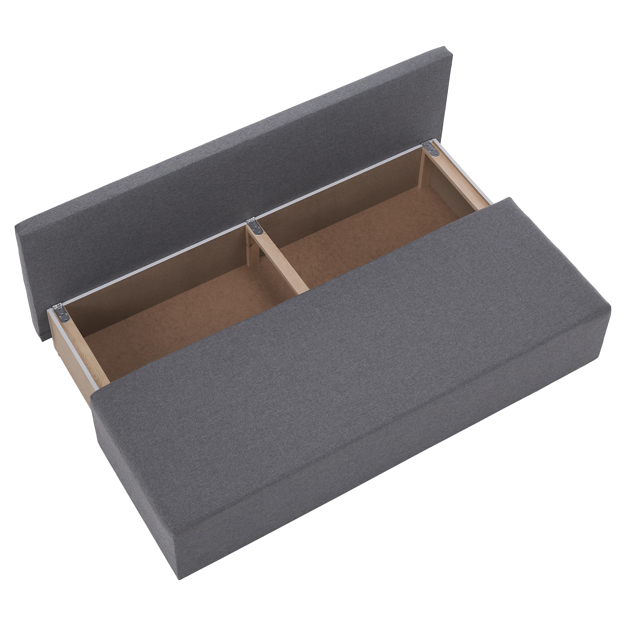 Materiál: látka Malmo 90 Oděruodolnost textilie podle testu Martindale: 30 000 oděrů Barva: světle šedá Rozměry (ŠxHxV): 200x79x78 cm Plocha na spaní (ŠxD): 140x200 cm Výška sedu: 40 cm Hloubka sedu: 48/70 cm Na nožičkách Materiál nožiček: plast Barva nožiček: černá Výška spodního prostoru od podlahy: 2,5 cm Výplň: pur pěna T28 Čalouněná Rozkládací Úložný prostor Dodávána s polštáři Rozměry velkého polštáře (ŠxV): 65x45 cm Rozměry malého polštáře (ŠxH):35x65 cm Nosnost na osobu: 90 kg Praktická Moderní Dodáváno v demontu