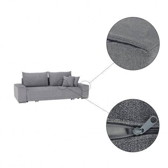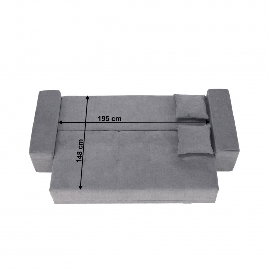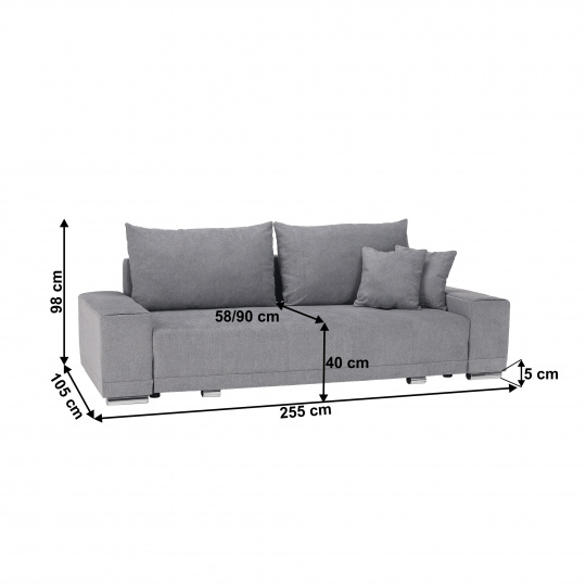 Materiál čalounění: látka Alfa Oděruodolnost textilie podle testu Martindale: 55 000 oděrek Barva čalounění: 13 světlešedá Rozměry (ŠxHxV): 255x105x98 cm Plocha na spaní (ŠxD): 148x195 cm Výška sedu: 40 cm Hloubka sedu: 58/90 cm Výška spodního prostoru od podlahy: 5 cm Výplň: pružina faliste / PUR pěna celočalouněná Provedení BIG SOFA rozkládací rohová S úložným prostorem S polštáři dekorativní prošívaná Dodávána v demontu Možnost objednat v 6 barevných provedeních látky Alfa v ceně 18.990 Kč. Při individuální objednávce je třeba zaplatit 20% zálohu z dané částky. Po uhrazení zálohy bude Váš požadavek zadána do výroby. Doba dodání 6-8 týdnů.