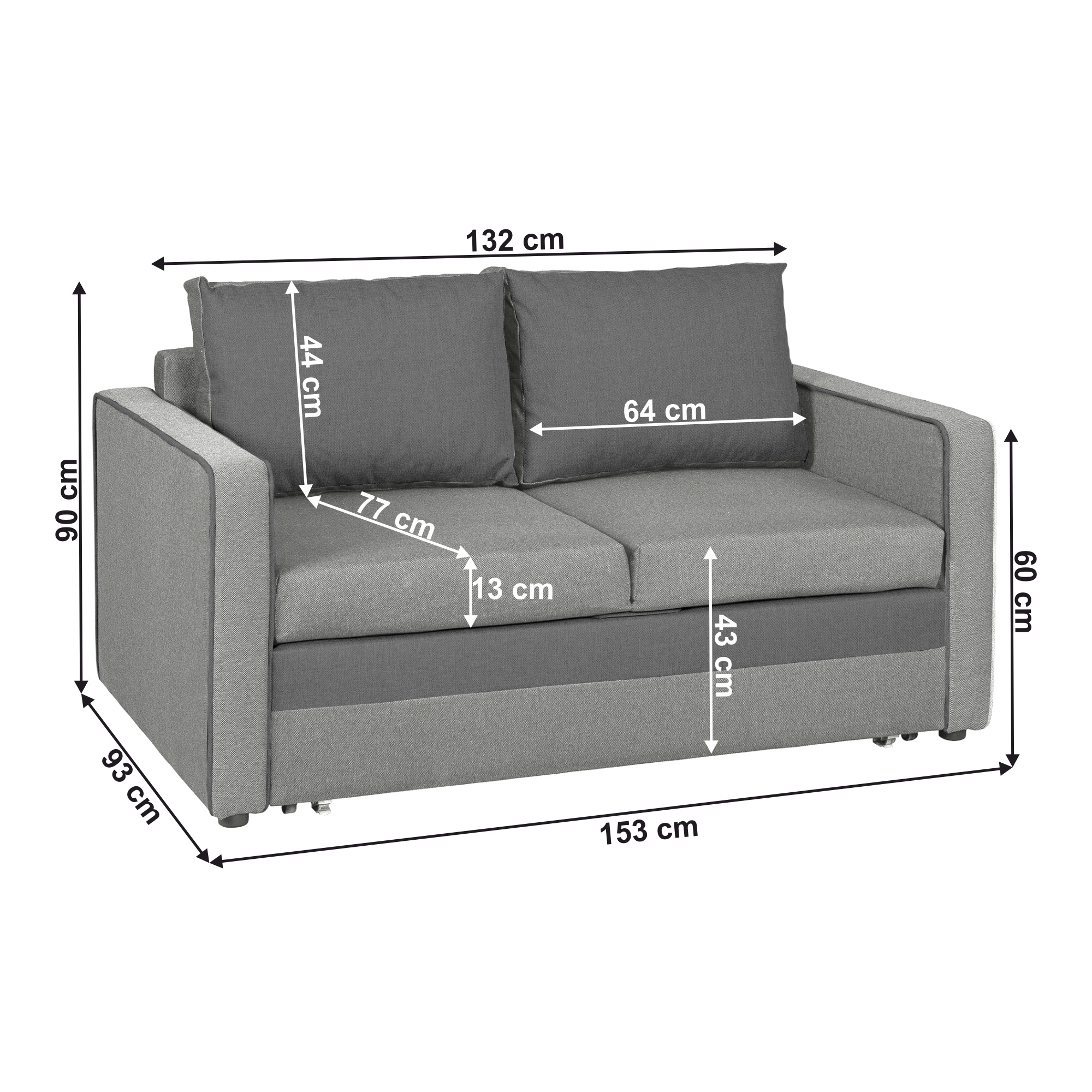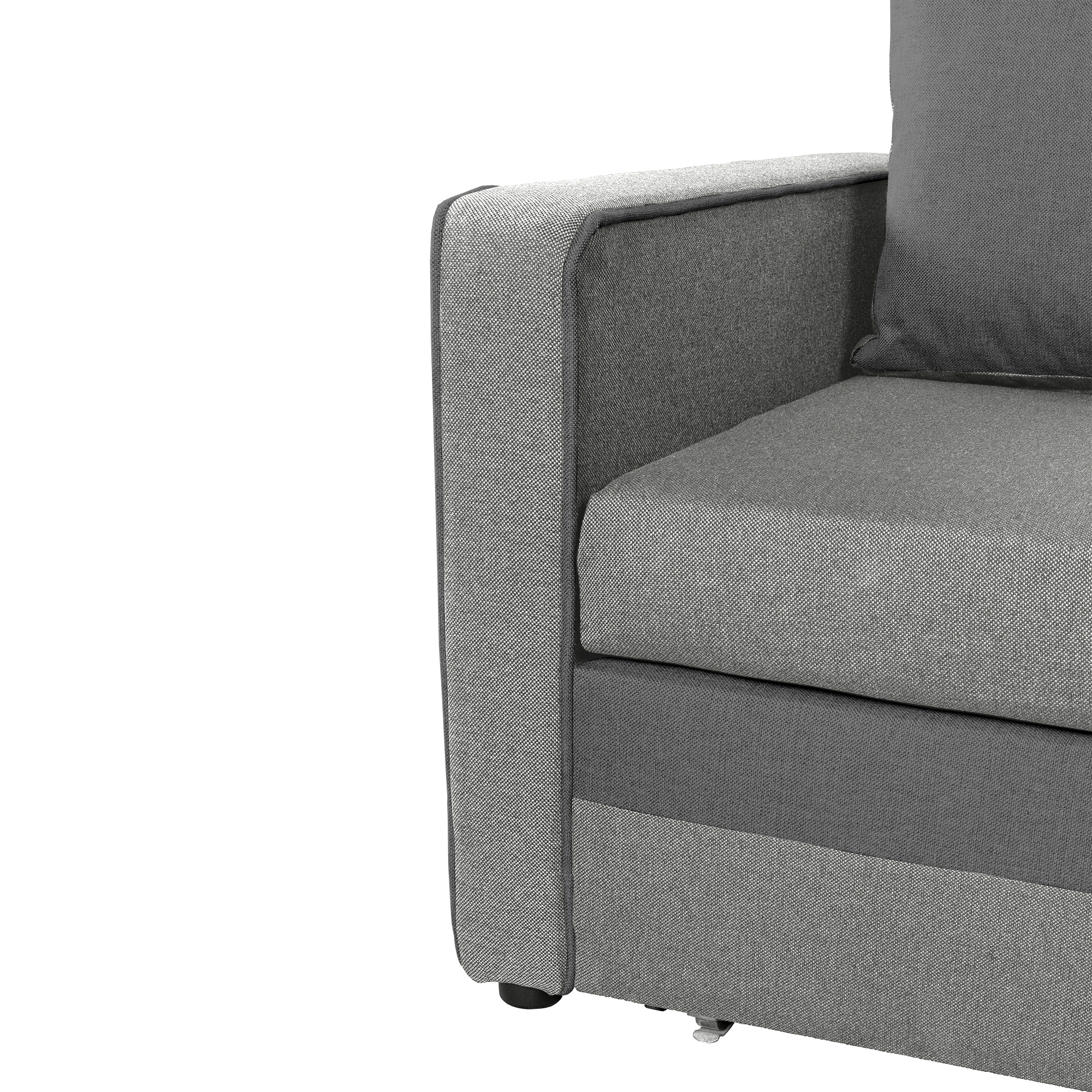 Materiál: látka Inari 91/96 Oděruodolnost textilie dle testu Martindale: 49 000 oděrů Barva: světle šedá/šedá Rozměry (ŠxHxV): 153x93x90 cm Výška sedu: 43 cm Hloubka sedu: 77 cm Plocha na spaní (ŠxD): 133x197 cm Plastové nožičky Výška spodního prostoru od podlahy: 2 cm Výška opěrky na ruku: 60 cm Výplň: bonel Celočalouněná Rozkládací S úložným prostorem S polštáři Rozměry polštářů (ŠxV): 64x44 cm Nosnost na osobu: 100 kg Praktická Moderní Dodáváno v montu