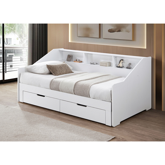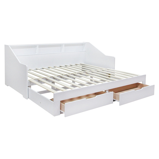 Materiál: MDF/masiv Barva: bílá Rozměry (ŠxHxV): 116x204x90 cm Rozměry po rozložení (ŠxHxV): 199x204x90 cm Plocha na spaní (ŠxD): 97x200 cm Plocha na spaní po rozkladu (ŠxD): 181,8x200 cm Výška po rošt: 33,4 cm Nosnost na lůžko: 135 kg Rozkládací Úložný prostor Dvě zásuvky Rozměry zásuvky (ŠxHxV): 88,2x31x20 cm Vnitřní rozměry zásuvky (ŠxHxV): 81,5x31,5x10 cm Nosnost zásuvky: 15 kg Dodáváno s masivním laťkovým roštem Prostor mezi laťkami: 1,2 cm Prostor mezi laťkami po rozložení: 8,7 cm Dodáváno bez matrace Doporučujeme zakoupit matraci z naší nabídky Doporučená výška matrace: 16 cm Zapuštění matrace: 1,2 cm Praktická Vyvýšená bočnice Tři police Dodáváno v demontu *Ke posteli je třeba zakoupit matrace. Pokud kupujete postel a plánujete ji používat rozloženou jako manželskou postel, doporučujeme matrace o rozměrech 90x200 nebo 180x200 cm z naší nabídky. Pokud postel budete používat většinou jako jednolůžko, v tom případě doporučujeme matrace o rozměru 85x200 a 95x200 cm z naší nabídky