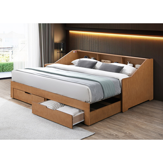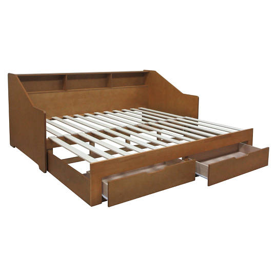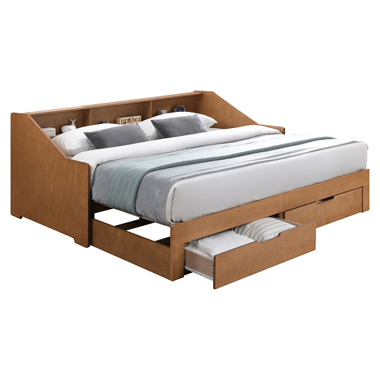 Materiál: MDF/dýha/masiv Barva: dub Rozměry (ŠxHxV): 116x204x90 cm Rozměry po rozložení (ŠxHxV): 199x204x90 cm Plocha na spaní (ŠxD): 97x200 cm Plocha na spaní po rozkladu (ŠxD): 181,8x200 cm Výška po rošt: 33,4 cm Nosnost na lůžko: 135 kg Rozkládací Úložný prostor Dvě zásuvky Rozměry zásuvky (ŠxHxV): 88,2x31x20 cm Vnitřní rozměry zásuvky (ŠxHxV): 81,5x31,5x10 cm Nosnost zásuvky: 15 kg Dodáváno s masivním laťkovým roštem Prostor mezi laťkami: 1,2 cm Prostor mezi laťkami po rozložení: 8,7 cm Dodáváno bez matrace Doporučujeme zakoupit matraci z naší nabídky Doporučená výška matrace: 16 cm Zapuštění matrace: 1,2 cm Praktická Vyvýšená bočnice Tři police Dodáváno v demontu *Ke posteli je třeba zakoupit matrace. Pokud kupujete postel a plánujete ji používat rozloženou jako manželskou postel, doporučujeme matrace o rozměrech 90x200 nebo 180x200 cm z naší nabídky. Pokud postel budete používat většinou jako jednolůžko, v tom případě doporučujeme matrace o rozměru 85x200 a 95x200 cm z naší nabídky