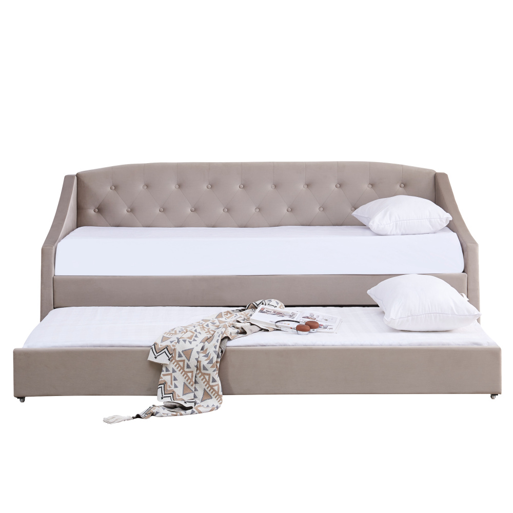 Materiál: Velvet látka/kov/pěna/překližka Oděruodolnost textilie podle testu Martindale: 80 000 oděrů Barva: hnědošedá Taupe Rozměry (ŠxHxV): 104x215x92 cm Plocha na spaní (ŠxD): 90x200 cm Výška po rošt: 42 cm Nosnost na osobu: 100 kg Na nožičkách Výška nožiček: 4 cm Výsuvná přistýlka Přistýlka na kolečkách Dodávána s lamelovým roštem Dodáváno bez matrace Doporučujeme zakoupit matraci z naší nabídky Rozměr matrace na přistýlku: 90x200 cm Doporučená výška matrace na přistýlku: 15 cm Doporučená výška matrace: 20 cm Dekorativně prošité čelo postele Elegantní Čalouněná Dodáváno v demontu