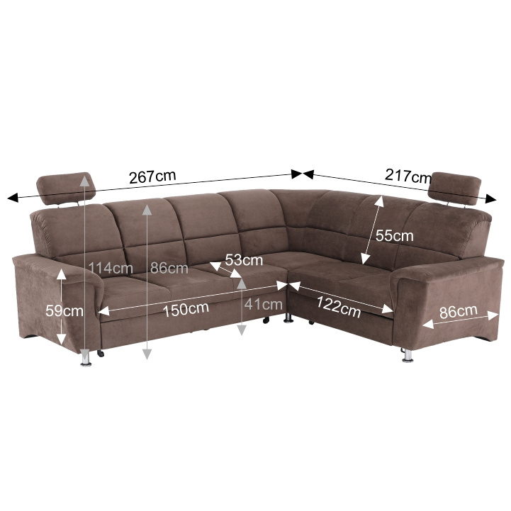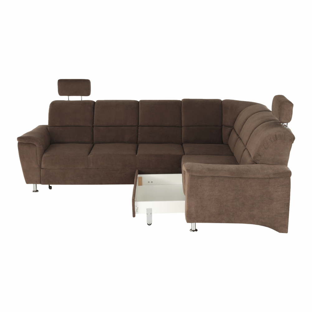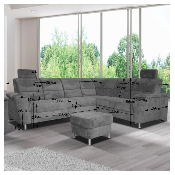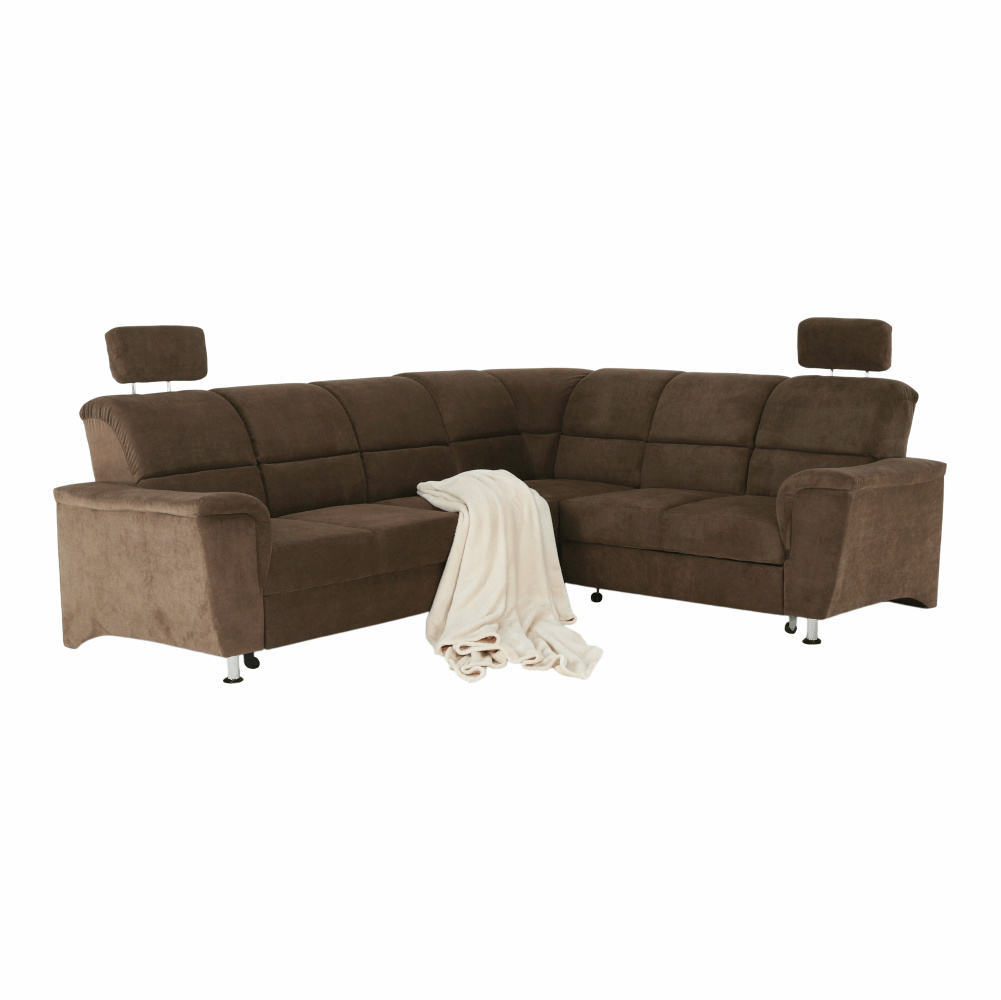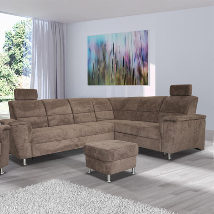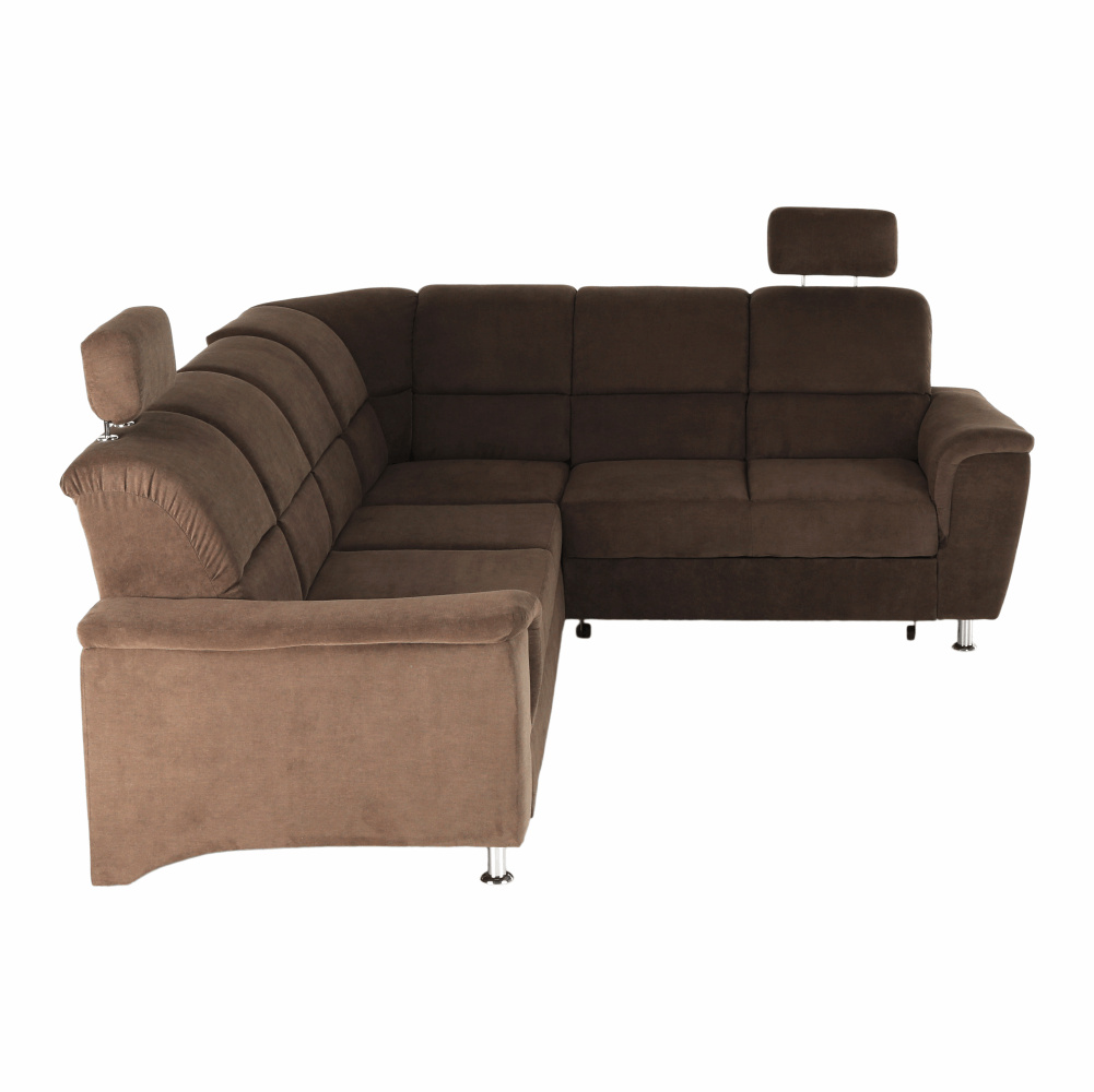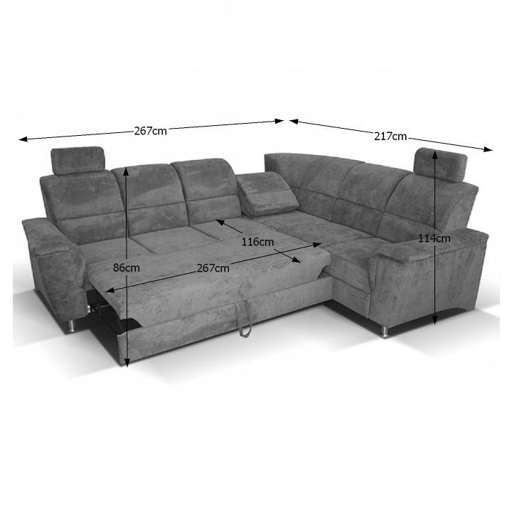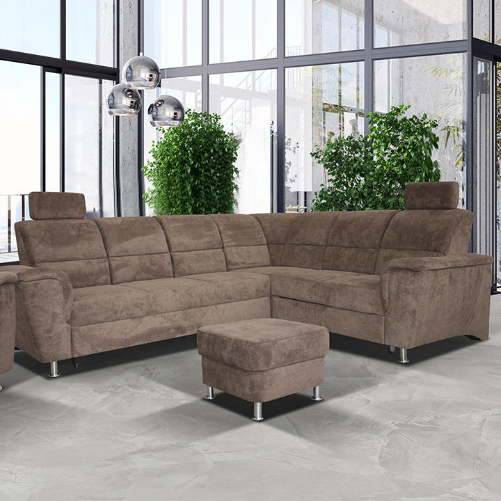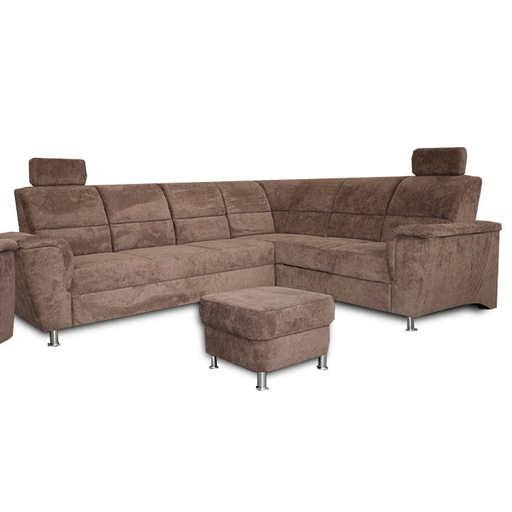 Celočalouněná, rozkládací sedací souprava, pravá, SANTIAGO Materiál: látka Oděruodolnost textilie podle testu Martindale: 72 000 oděrek Barevné provedení: Matrix 5 hnědá Kovové nožičky s povrchovou úpravou chrom. Polohovatelné opěrky hlavy. Rozměry (ŠxHxV): 267x217x86 / 114 cm Plocha na spaní (ŠxD): 118x200 cm Výška sedu: 41 cm Hloubka sedu: 53 cm Nosnost na osobu: 90 kg Manuální systém rozkladu Výška spodního prostoru od podlahy: 10 cm Možnost objednání v 6 barevných provedeních látky Matrix v ceně: roh - 34.090 Kč, křeslo - 10.190 Kč, taburet - 3.390 Kč. Při individuální objednávce je třeba zaplatit 20% zálohu z dané částky. Po uhrazení zálohy bude Váš požadavek zadán do výroby. Doba dodání 6-8 týdnů. Váš výběr poznamenejte do poznámky v objednávce.