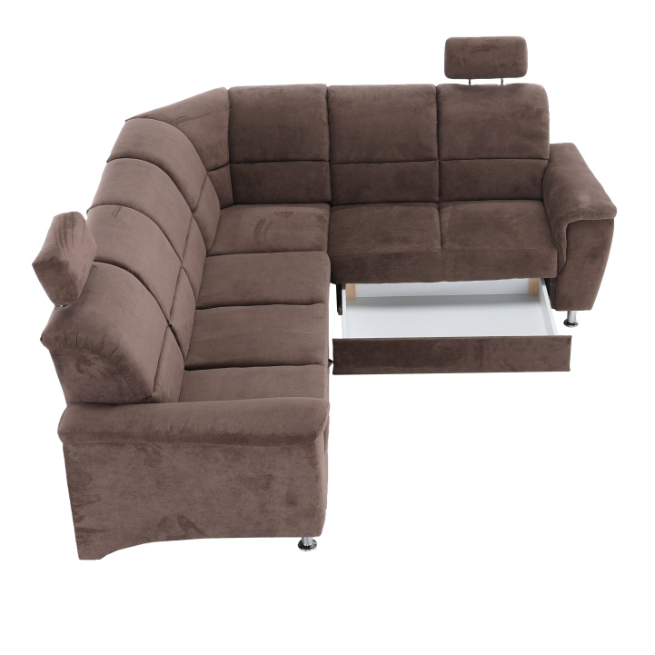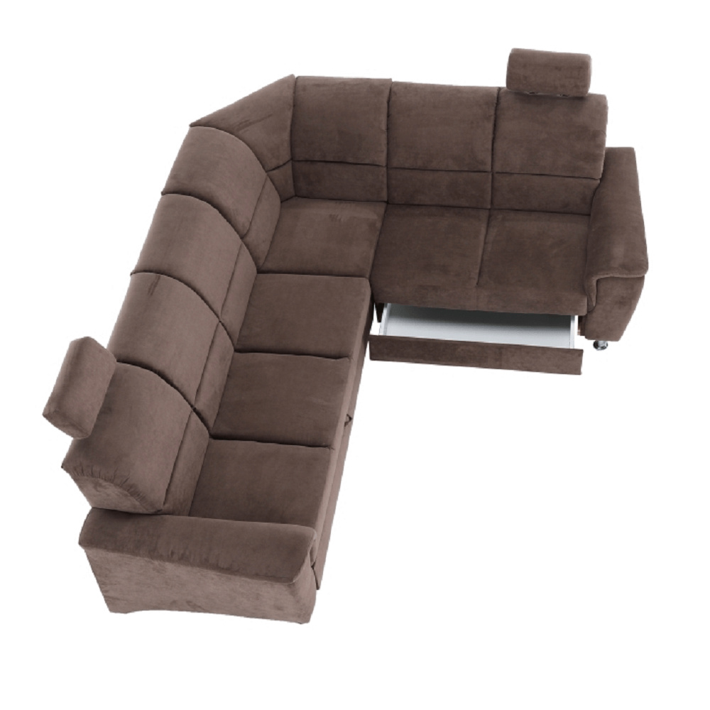 Rozkládací sedací souprava, hnědá látka, pravá, SANTIAGO