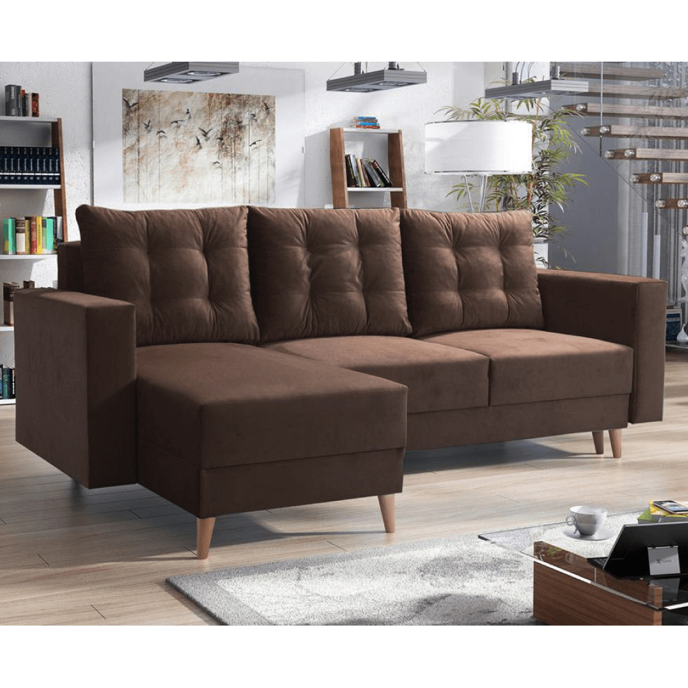 Rozkládací sedací souprava, hnědá, levá, BLEKY ROH