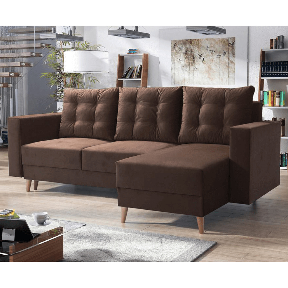 Materiál čalounění: látka Kronos 6 Oděruodolnost látky podle testu Martindale: 50 000 Barva čalounění: hnědá Rozměry (ŠxHxV): 235x145x90 cm Plocha na spaní (ŠxD): 130x200 cm Výška sedu: 46 cm Hloubka sedu: 52 cm Šířka otomanu: 68 cm Šířka sedáku: 135 cm Šířka opěrky na ruku: 15 cm Výška spodního prostoru od podlahy: 13 cm Na dřevěných nožičkách Barva nožiček: buk Nosnost na osobu: 90 kg Výplň: pružina falista + Pur pěna Dodávána se třemi polštáři Rozměry polštářů (ŠxV): 68x58 cm Rozkládací Rohová Celočalouněná S úložným prostorem Pravé provedení Dodáváno v demontu