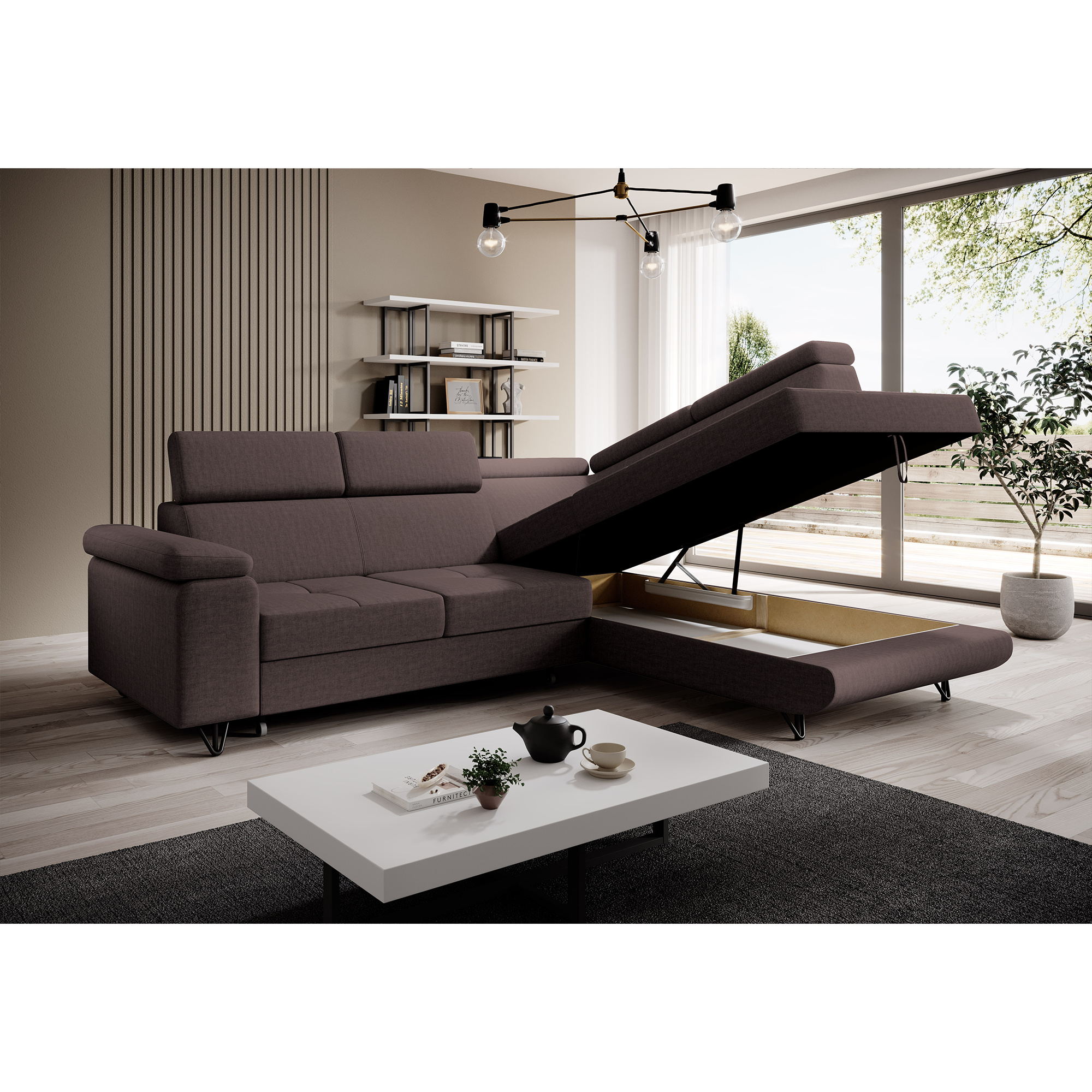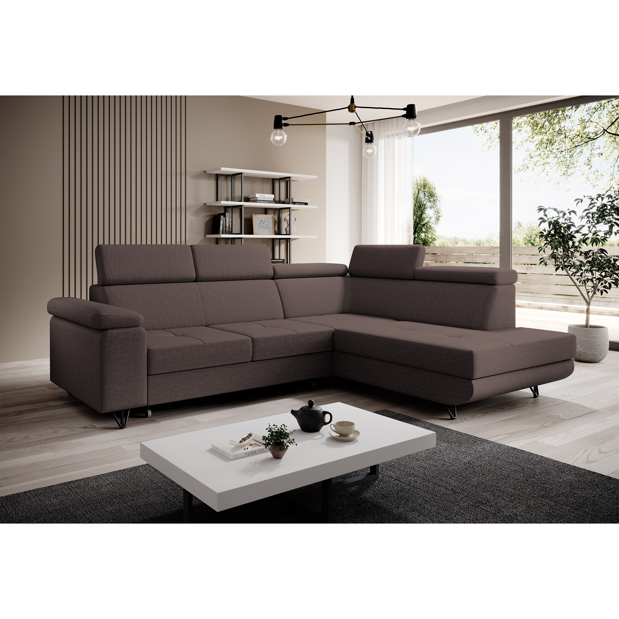 Rozkládací sedací souprava, hnědá, pravá, JOGI ROH