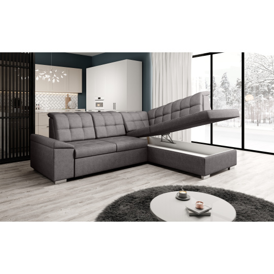 Materiál čalounění: látka Soro 24 Oděruodolnost látky podle testu Martindale: 90 000 Barva čalounění: hnědošedá Rozměry (ŠxHxV): 260x202x88/103 cm Plocha na spaní (ŠxD): 120x190 cm Výška sedu: 41 cm Hloubka sedu: 54 cm Šířka otomanu: 95 cm Šířka sedáku: 135 cm Na nožičkách Materiál nožiček: plast Barva nožiček: stříbrná Výška spodního prostoru od podlahy: 5 cm Nosnost na osobu: 90 kg Výplň: pružina falista + Pur pěna Rozkládací Rohová Celočalouněná S úložným prostorem Polohovací opěrky hlavy Pravé provedení Dodáváno v demontu Možnost objednání v 7 barevných odstínech látky Soro v ceně 35.690 Kč s dodací lhůtou 6-8 týdnů. Při individuální objednávce je třeba zaplatit 20% zálohu z dané částky. Po uhrazení zálohy bude Váš požadavek zadán do výroby.