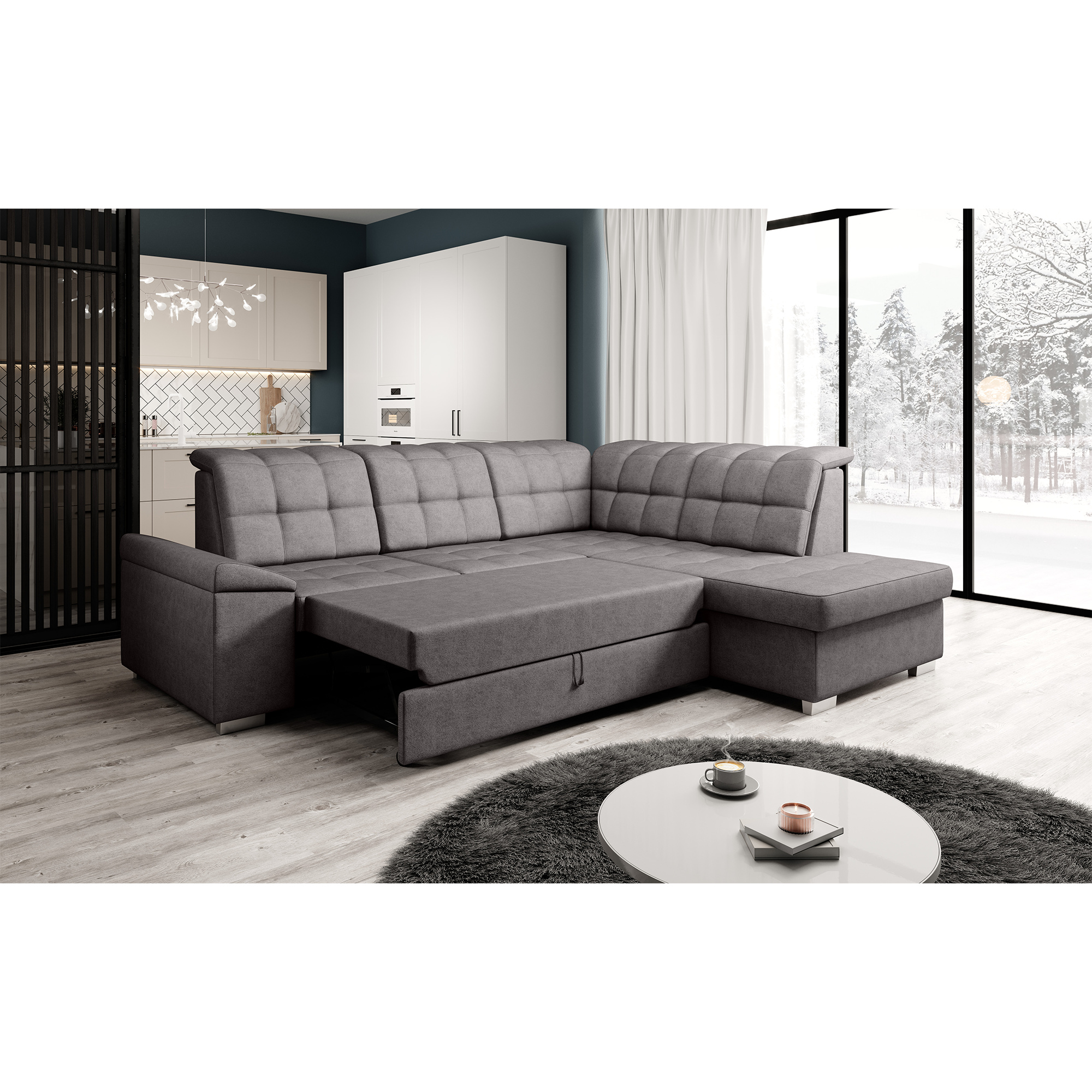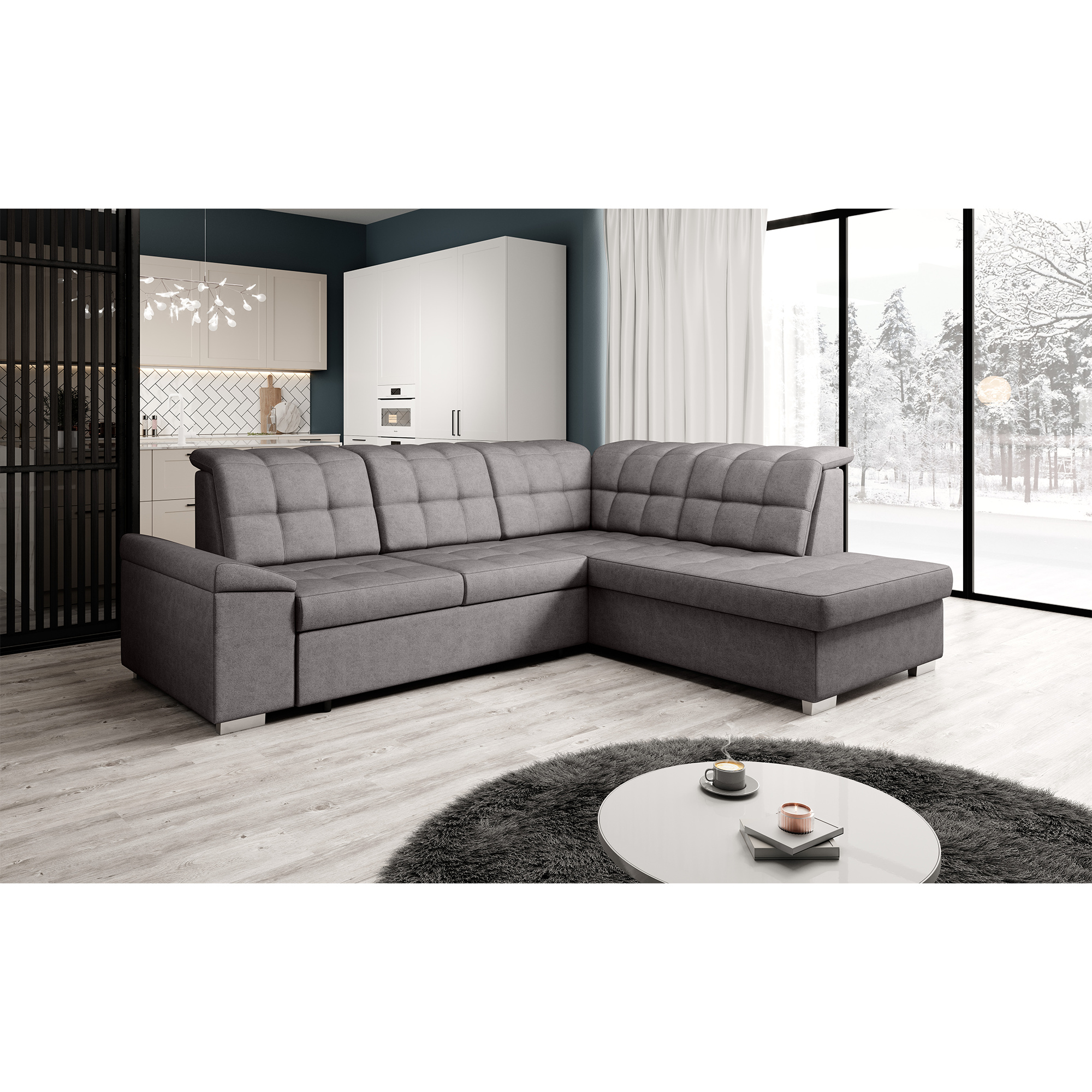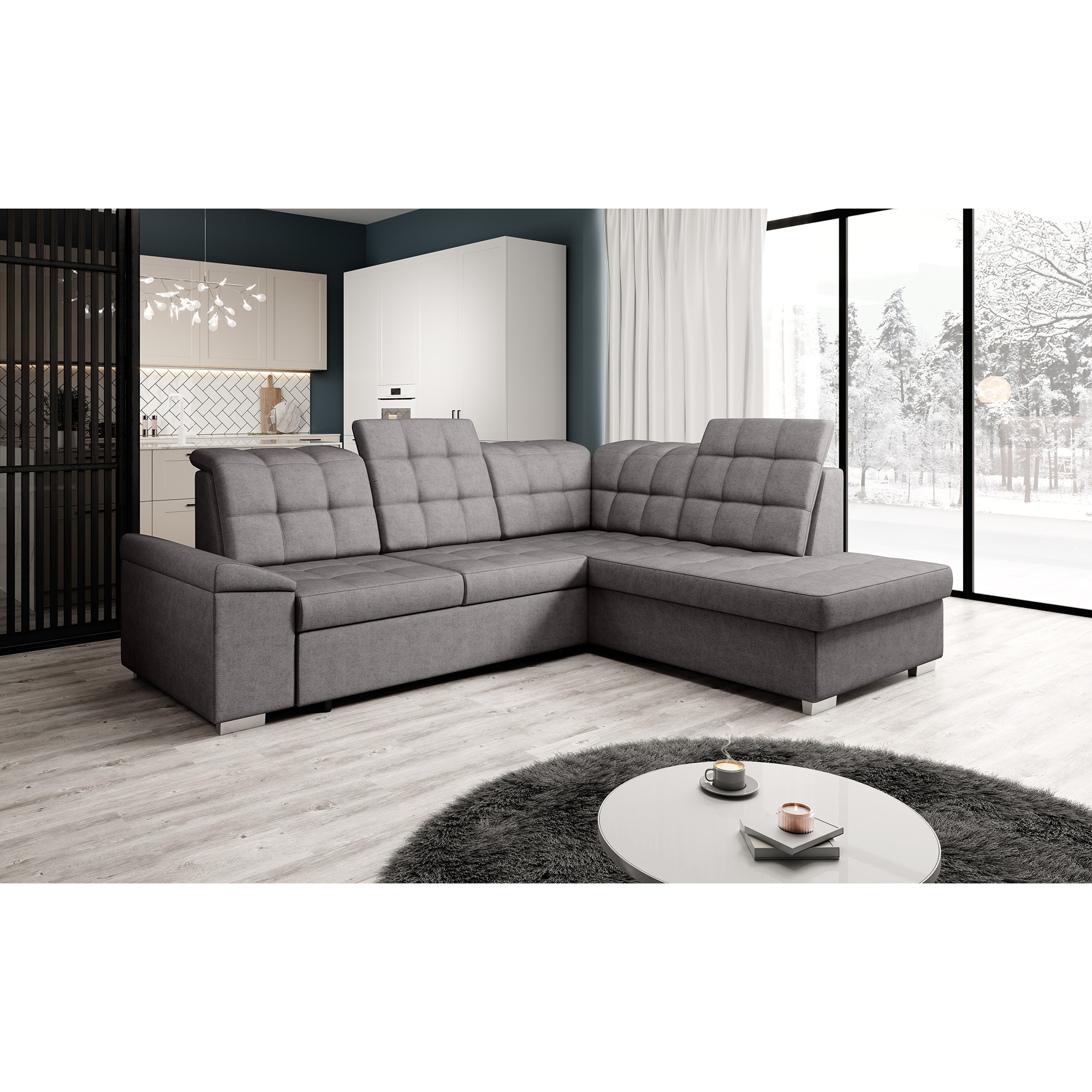Materiál čalounění: látka Soro 24 Oděruodolnost látky podle testu Martindale: 90 000 Barva čalounění: hnědošedá Rozměry (ŠxHxV): 260x202x88/103 cm Plocha na spaní (ŠxD): 120x190 cm Výška sedu: 41 cm Hloubka sedu: 54 cm Šířka otomanu: 95 cm Šířka sedáku: 135 cm Na nožičkách Materiál nožiček: plast Barva nožiček: stříbrná Výška spodního prostoru od podlahy: 5 cm Nosnost na osobu: 90 kg Výplň: pružina falista + Pur pěna Rozkládací Rohová Celočalouněná S úložným prostorem Polohovací opěrky hlavy Pravé provedení Dodáváno v demontu Možnost objednání v 7 barevných odstínech látky Soro v ceně 35.690 Kč s dodací lhůtou 6-8 týdnů. Při individuální objednávce je třeba zaplatit 20% zálohu z dané částky. Po uhrazení zálohy bude Váš požadavek zadán do výroby.