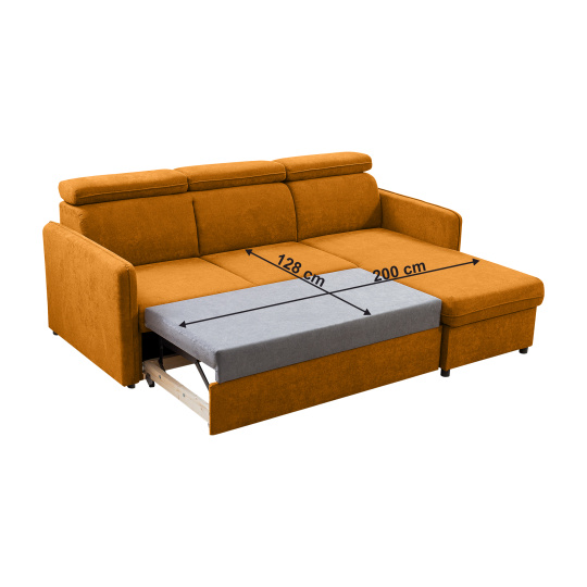 Materiál čalounění: látka Enjoy New 40 Oděruodolnost látky podle testu Martindale: 45 000 oděrů Barva čalounění: hořčicová Rozměry (ŠxHxV): 217x163x85/97 cm Plocha na spaní (ŠxD): 128x200 cm Výška sedu: 43 cm Hloubka sedu: 60 cm Výška zádové opěrky: 56 cm Šířka otomanu: 71 cm Hloubka otomanu: 130 cm Šířka sedáku: 127 cm Rozměry opěrky na ruce (ŠxHxV): 10x93x63 cm Výška spodního prostoru od podlahy: 3,5 cm Plastové nožičky Barva nožiček: černá Nosnost na osobu: 90 kg Výplň: pružina falista Rozkládací Rohová Celočalouněná Univerzální S úložným prostorem Polohovací opěrky hlavy Dodáváno v demontu Možnost objednání ve 4 barevných odstínech látky Enjoy New s dodací lhůtou 6-8 týdnů. Při individuální objednávce je třeba zaplatit 20% zálohu z dané částky. Po uhrazení zálohy bude Váš požadavek zadán do výroby.
