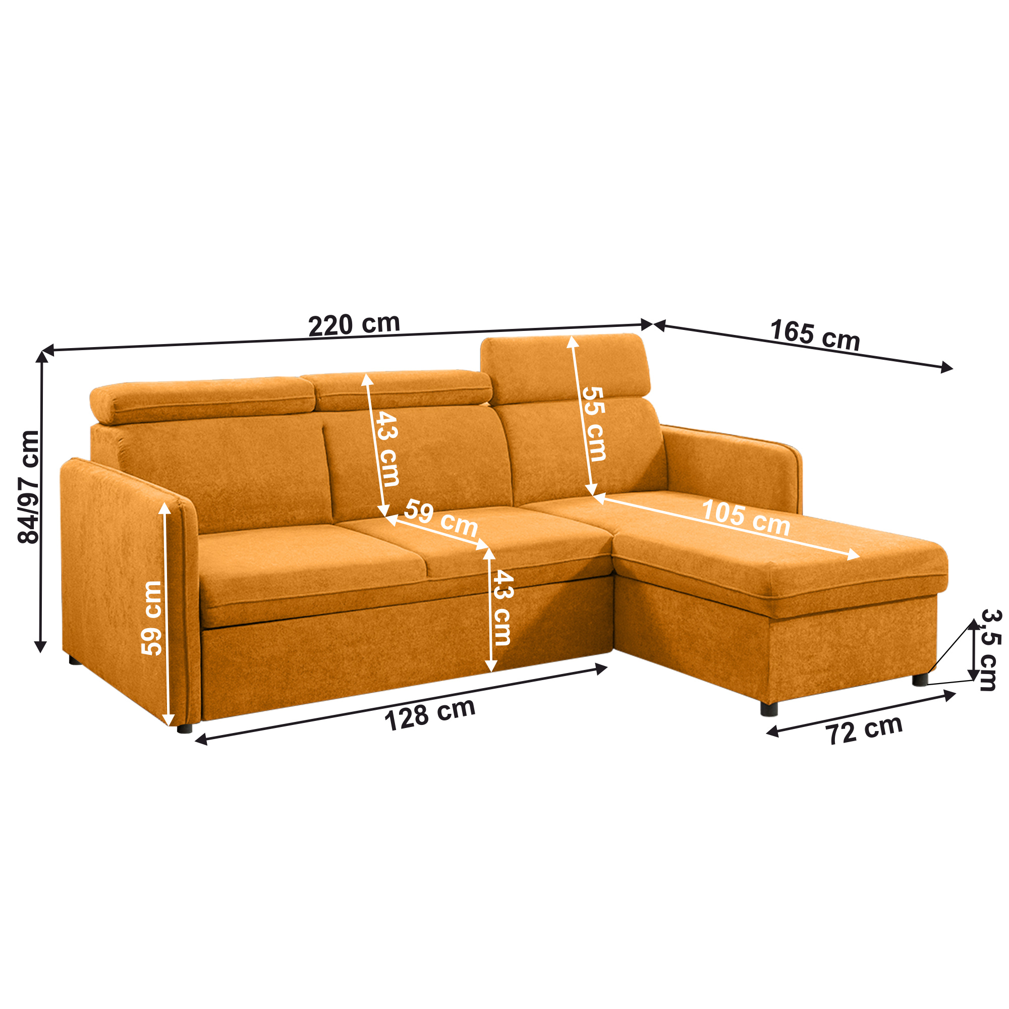 Materiál čalounění: látka Enjoy New 40 Oděruodolnost látky podle testu Martindale: 45 000 oděrů Barva čalounění: hořčicová Rozměry (ŠxHxV): 217x163x85/97 cm Plocha na spaní (ŠxD): 128x200 cm Výška sedu: 43 cm Hloubka sedu: 60 cm Výška zádové opěrky: 56 cm Šířka otomanu: 71 cm Hloubka otomanu: 130 cm Šířka sedáku: 127 cm Rozměry opěrky na ruce (ŠxHxV): 10x93x63 cm Výška spodního prostoru od podlahy: 3,5 cm Plastové nožičky Barva nožiček: černá Nosnost na osobu: 90 kg Výplň: pružina falista Rozkládací Rohová Celočalouněná Univerzální S úložným prostorem Polohovací opěrky hlavy Dodáváno v demontu Možnost objednání ve 4 barevných odstínech látky Enjoy New s dodací lhůtou 6-8 týdnů. Při individuální objednávce je třeba zaplatit 20% zálohu z dané částky. Po uhrazení zálohy bude Váš požadavek zadán do výroby.