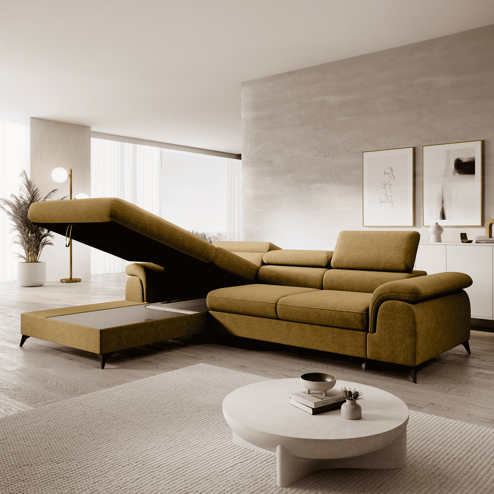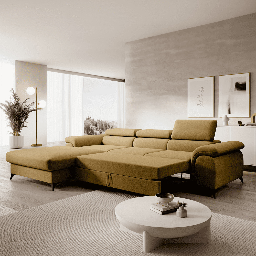 Rozkládací sedací souprava, hořčicová, levá, HORTY ROH