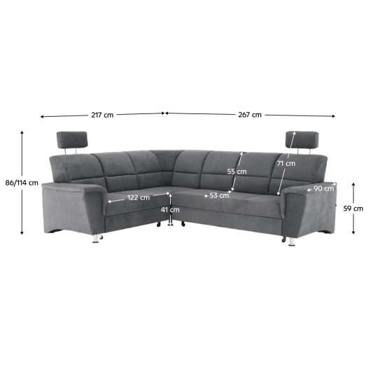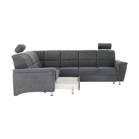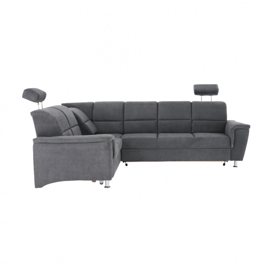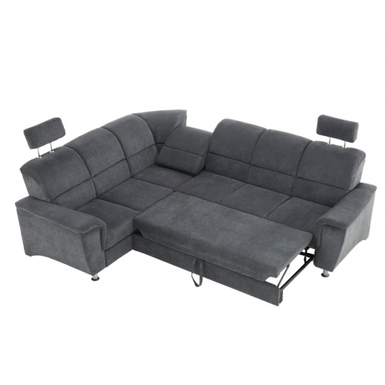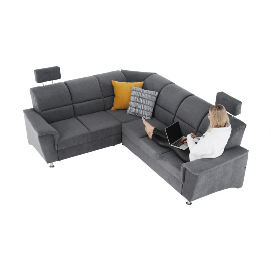 Celočalouněná, rozkládací sedací souprava, levá, SANTIAGO Materiál: látka Oděruodolnost textilie podle testu Martindale: 72 000 oděrek Barevné provedení: Matrix 17 šedá Kovové nožičky s povrchovou úpravou chrom. Polohovatelné opěrky hlavy. Rozměry (ŠxHxV): 267x217x86 / 114 cm Rozměry opěrky na ruku (HxV): 90x59 cm Plocha na spaní (ŠxD): 118x200 cm Výška sedu: 41 cm Hloubka sedu: 53 cm Nosnost na osobu: 90 kg Manuální systém rozkladu Výška spodního prostoru od podlahy: 10 cm Možnost objednání v 6 barevných provedeních látky Matrix v ceně: roh - 33.090 Kč, křeslo - 9.890 Kč, taburet - 3.290 Kč.. Při individuální objednávce je třeba zaplatit 20% zálohu z dané částky. Po uhrazení zálohy bude Váš požadavek zadán do výroby. Doba dodání 6-8 týdnů. Váš výběr poznamenejte do poznámky v objednávce.
