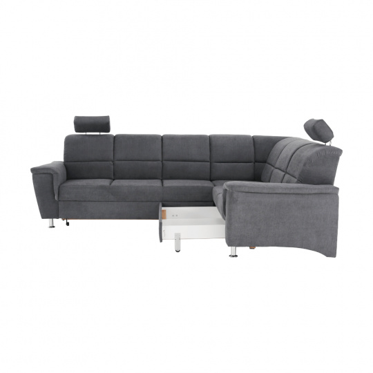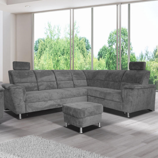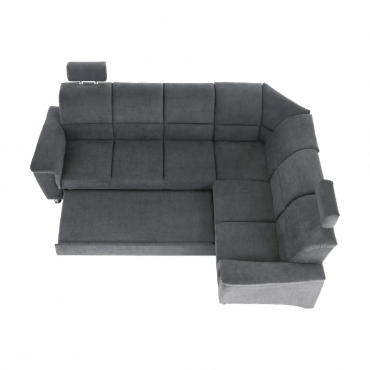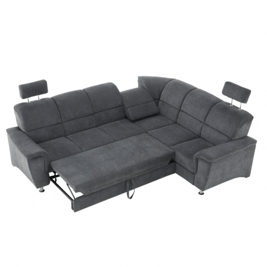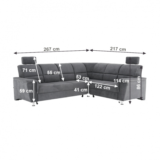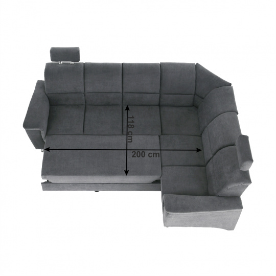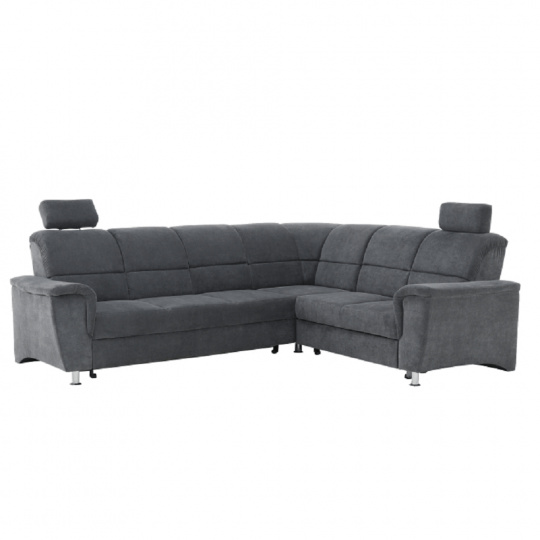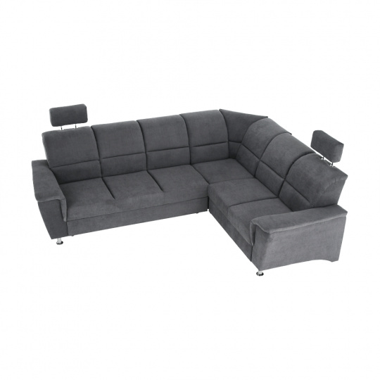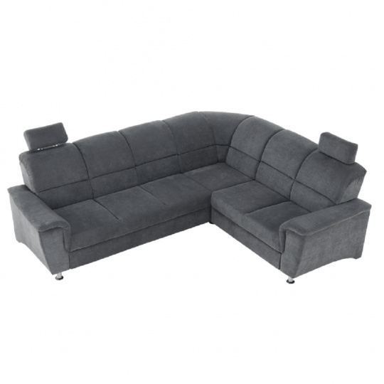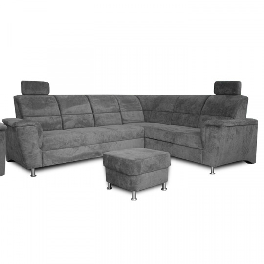 Celočalouněná, rozkládací sedací souprava, pravá, SANTIAGO Materiál: látka Oděruodolnost textilie podle testu Martindale: 72 000 oděrek Barevné provedení: Matrix 17 šedá Kovové nožičky s povrchovou úpravou chrom. Polohovatelné opěrky hlavy. Rozměry (ŠxHxV): 267x217x86 / 114 cm Plocha na spaní (ŠxD): 118x200 cm Výška sedu: 41 cm Hloubka sedu: 53 cm Hloubka sedu: 53 cm Nosnost na osobu: 90 kg Manuální systém rozkladu Výška spodního prostoru od podlahy: 10 cm Možnost objednání v 6 barevných provedeních látky Matrix v ceně: roh - 33.090 Kč, křeslo - 9.890 Kč, taburet - 3.290 Kč. Při individuální objednávce je třeba zaplatit 20% zálohu z dané částky. Po uhrazení zálohy bude Váš požadavek zadán do výroby. Doba dodání 6-8 týdnů. Váš výběr poznamenejte do poznámky v objednávce.