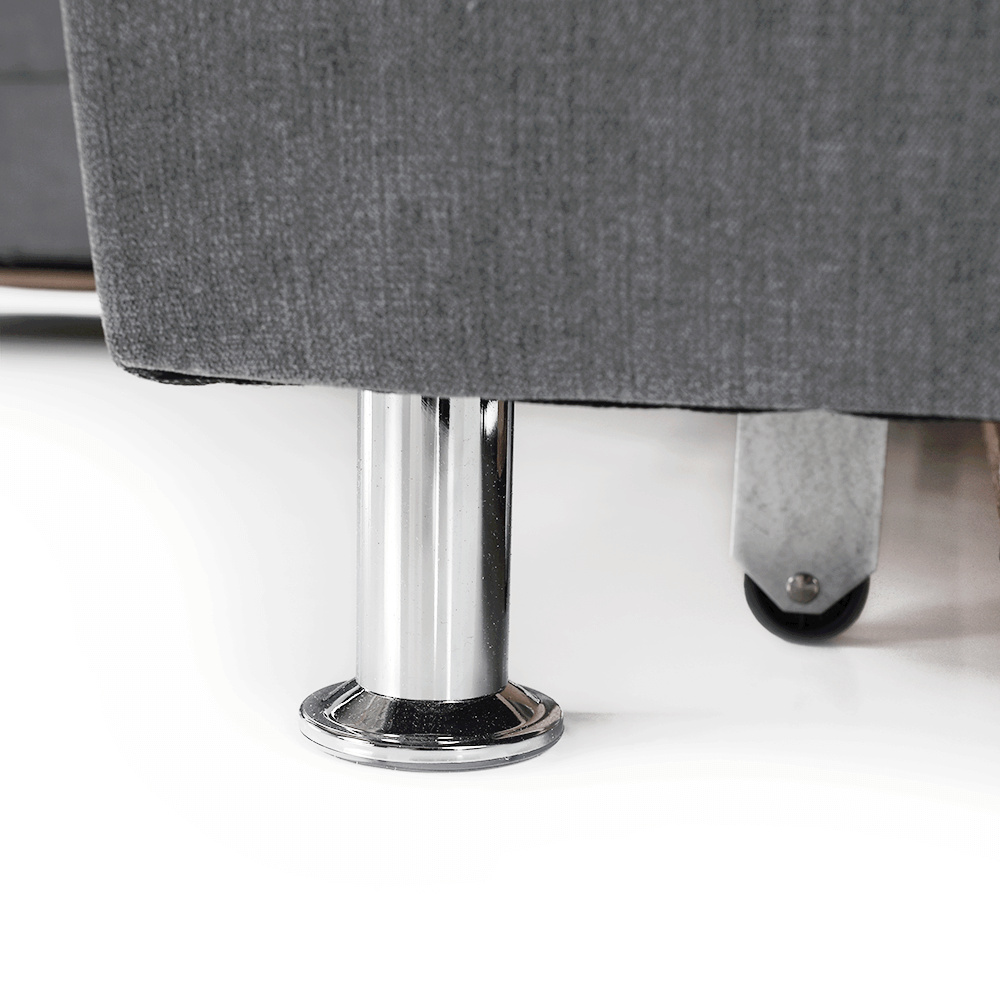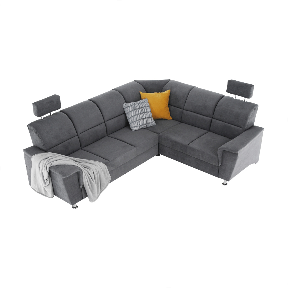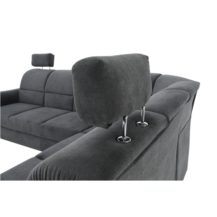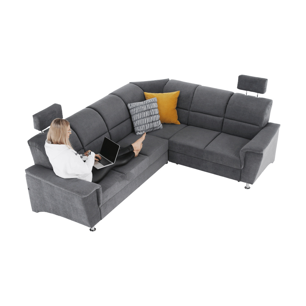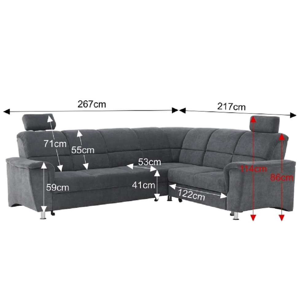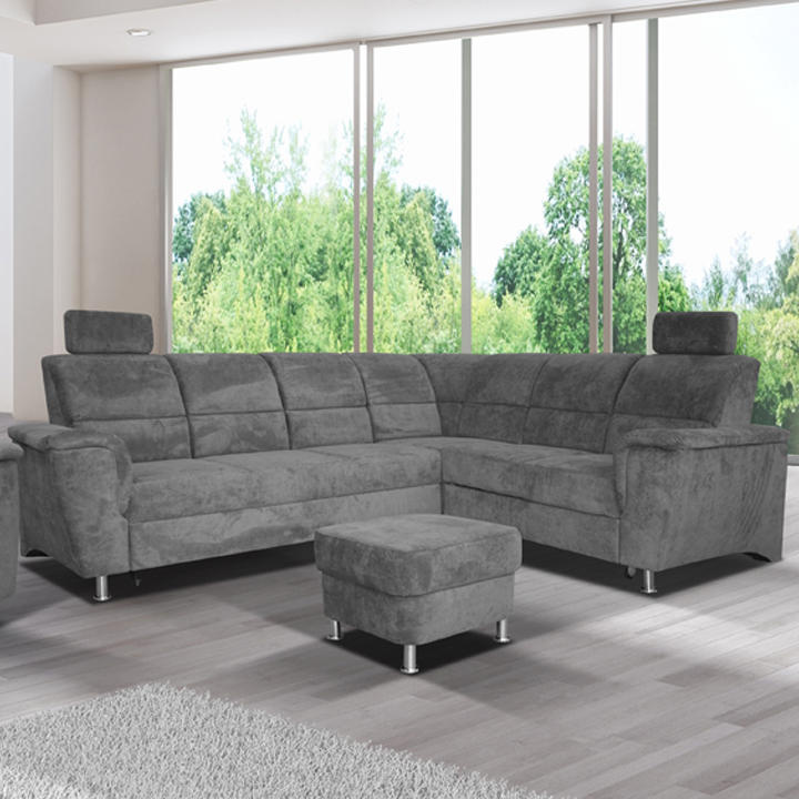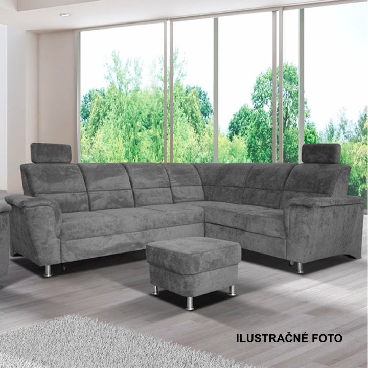 Celočalouněná, rozkládací sedací souprava, pravá, SANTIAGO Materiál: látka Oděruodolnost textilie podle testu Martindale: 72 000 oděrek Barevné provedení: Matrix 17 šedá Kovové nožičky s povrchovou úpravou chrom. Polohovatelné opěrky hlavy. Rozměry (ŠxHxV): 267x217x86 / 114 cm Plocha na spaní (ŠxD): 118x200 cm Výška sedu: 41 cm Hloubka sedu: 53 cm Hloubka sedu: 53 cm Nosnost na osobu: 90 kg Manuální systém rozkladu Výška spodního prostoru od podlahy: 10 cm Možnost objednání v 6 barevných provedeních látky Matrix v ceně: roh - 33.090 Kč, křeslo - 9.890 Kč, taburet - 3.290 Kč. Při individuální objednávce je třeba zaplatit 20% zálohu z dané částky. Po uhrazení zálohy bude Váš požadavek zadán do výroby. Doba dodání 6-8 týdnů. Váš výběr poznamenejte do poznámky v objednávce.