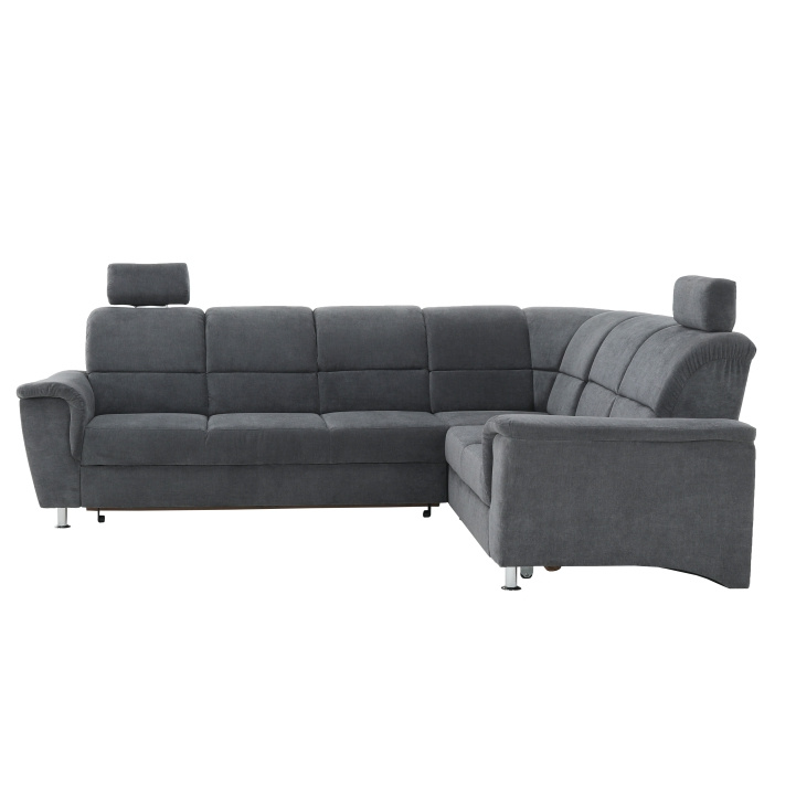 Celočalouněná, rozkládací sedací souprava, pravá, SANTIAGO Materiál: látka Oděruodolnost textilie podle testu Martindale: 72 000 oděrek Barevné provedení: Matrix 17 šedá Kovové nožičky s povrchovou úpravou chrom. Polohovatelné opěrky hlavy. Rozměry (ŠxHxV): 267x217x86 / 114 cm Plocha na spaní (ŠxD): 118x200 cm Výška sedu: 41 cm Hloubka sedu: 53 cm Hloubka sedu: 53 cm Nosnost na osobu: 90 kg Manuální systém rozkladu Výška spodního prostoru od podlahy: 10 cm Možnost objednání v 6 barevných provedeních látky Matrix v ceně: roh - 34.090 Kč, křeslo - 10.190 Kč, taburet - 3.390 Kč. Při individuální objednávce je třeba zaplatit 20% zálohu z dané částky. Po uhrazení zálohy bude Váš požadavek zadán do výroby. Doba dodání 6-8 týdnů. Váš výběr poznamenejte do poznámky v objednávce.