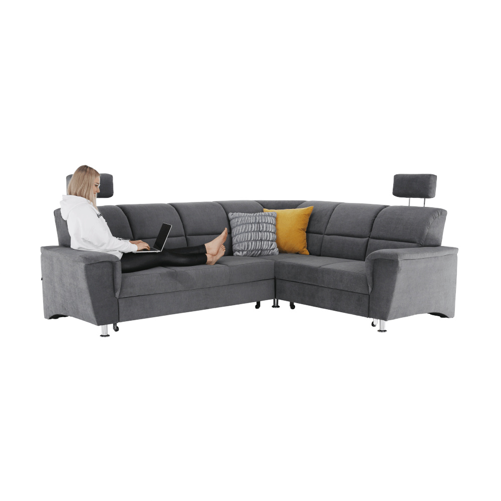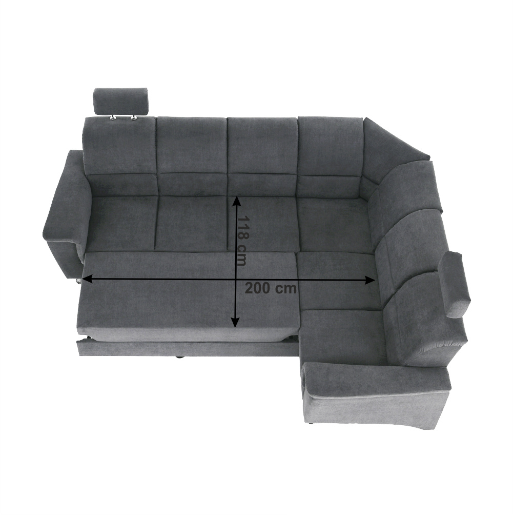 Rozkládací sedací souprava, šedá látka, pravá, SANTIAGO
