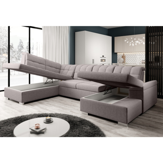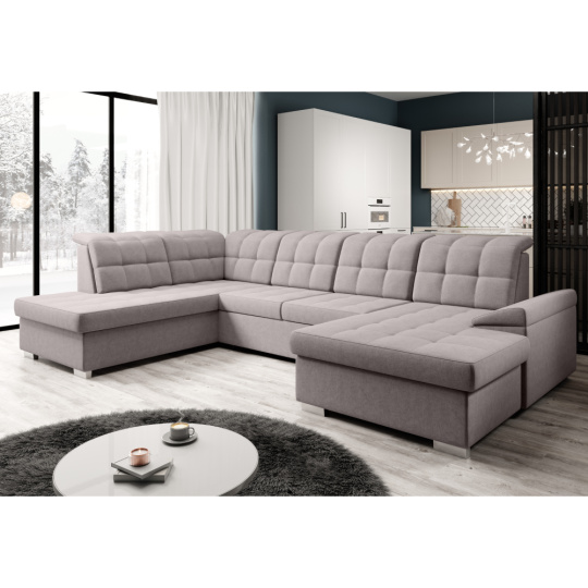 Materiál čalounění: látka Soro 23 Oděruodolnost látky podle testu Martindale: 90 000 Barva čalounění: šedobéžová Taupe Rozměry (ŠxHxV): 320x202/155x88/103 cm Plocha na spaní (ŠxD): 120x252 cm Výška sedu: 41 cm Hloubka sedu: 54 cm Šířka otomanu: 98 cm Šířka sedáku: 135 cm Na nožičkách Materiál nožiček: plast Barva nožiček: stříbrná Výška spodního prostoru od podlahy: 5 cm Nosnost na osobu: 90 kg Výplň: pružina falista + Pur pěna Rozkládací Rohová Celočalouněná Tvar U Se dvěma úložnými prostory Polohovací opěrky hlavy Levé provedení Dodáváno v demontu Možnost objednání v 7 barevných odstínech látky Soro v ceně 44.190 Kč s dodací lhůtou 6-8 týdnů. Při individuální objednávce je třeba zaplatit 20% zálohu z dané částky. Po uhrazení zálohy bude Váš požadavek zadán do výroby.