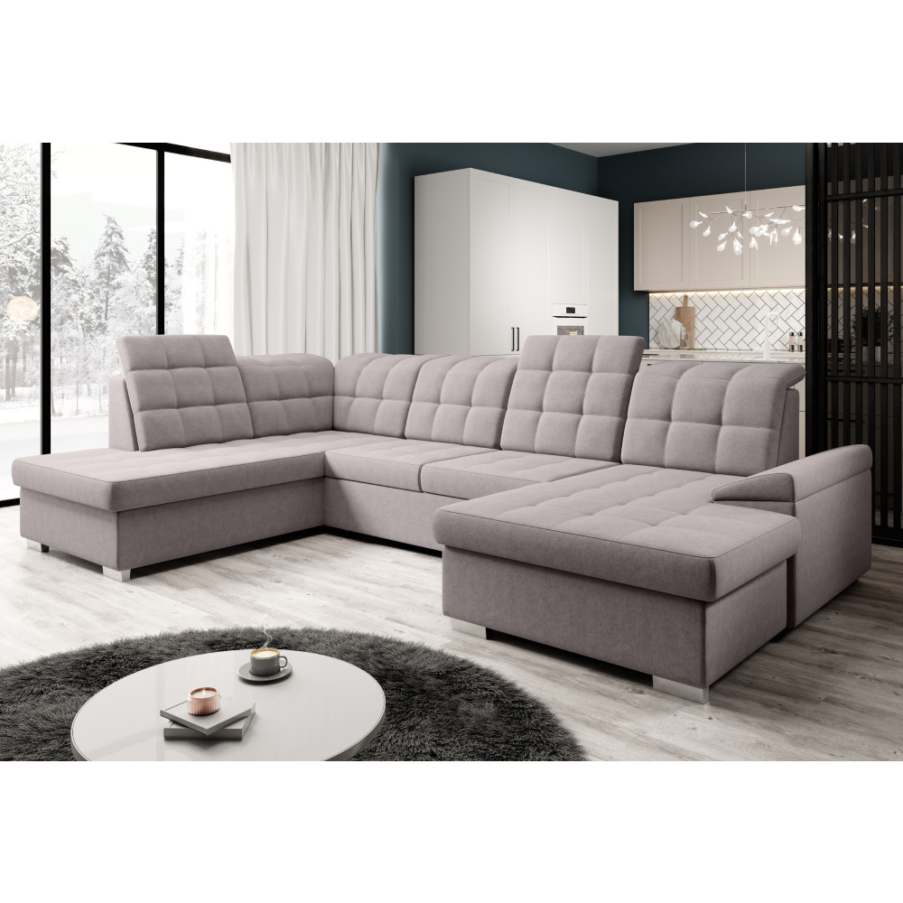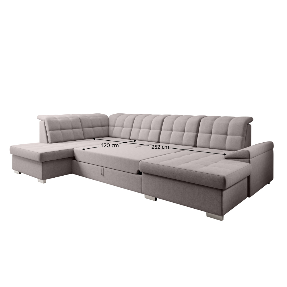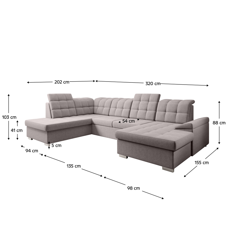 Materiál čalounění: látka Soro 23 Oděruodolnost látky podle testu Martindale: 90 000 Barva čalounění: šedobéžová Taupe Rozměry (ŠxHxV): 320x202/155x88/103 cm Plocha na spaní (ŠxD): 120x252 cm Výška sedu: 41 cm Hloubka sedu: 54 cm Šířka otomanu: 98 cm Šířka sedáku: 135 cm Na nožičkách Materiál nožiček: plast Barva nožiček: stříbrná Výška spodního prostoru od podlahy: 5 cm Nosnost na osobu: 90 kg Výplň: pružina falista + Pur pěna Rozkládací Rohová Celočalouněná Tvar U Se dvěma úložnými prostory Polohovací opěrky hlavy Levé provedení Dodáváno v demontu Možnost objednání v 7 barevných odstínech látky Soro v ceně 44.190 Kč s dodací lhůtou 6-8 týdnů. Při individuální objednávce je třeba zaplatit 20% zálohu z dané částky. Po uhrazení zálohy bude Váš požadavek zadán do výroby.