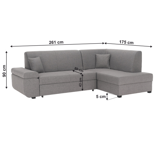Rozkládací sedací souprava, šedý melír, pravá, FOSA ROH