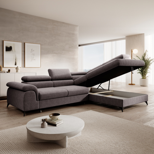 Materiál: látka Whisper 05 Oděruodolnost textilie podle testu Martindale: 100 000 oděrů Barva: sivohnědá Rozměry (ŠxHxV): 275x205x75/95 cm Plocha na spaní (ŠxD): 125x195 cm Výška sedu: 43 cm Hloubka sedu: 58 cm Rozměr sedáku: 140 cm Šířka otomanu: 105 cm Na nožičkách Materiál nožiček: kov Barva nožiček: černá Výška spodního prostoru od podlahy: 10,5 cm Výplň: pružina falista+pur pěna Rozkládací Celočalouněná Pravé provedení Tvar L Rohová S úložným prostorem 5 polohovatelných opěrek hlavy 5 stupňové polohování opěrek Dodáváno v demontu Možnost objednání v 6 barevných provedeních látky Whisper v ceně 36.390 Kč. Při individuální objednávce je třeba zaplatit 20% zálohu z dané částky. Po uhrazení zálohy bude Váš požadavek zadán do výroby. Dodací lhůta 6-8 týdnů.