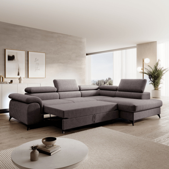 Rozkládací sedací souprava, sivohnědá, pravá, PONY ROH