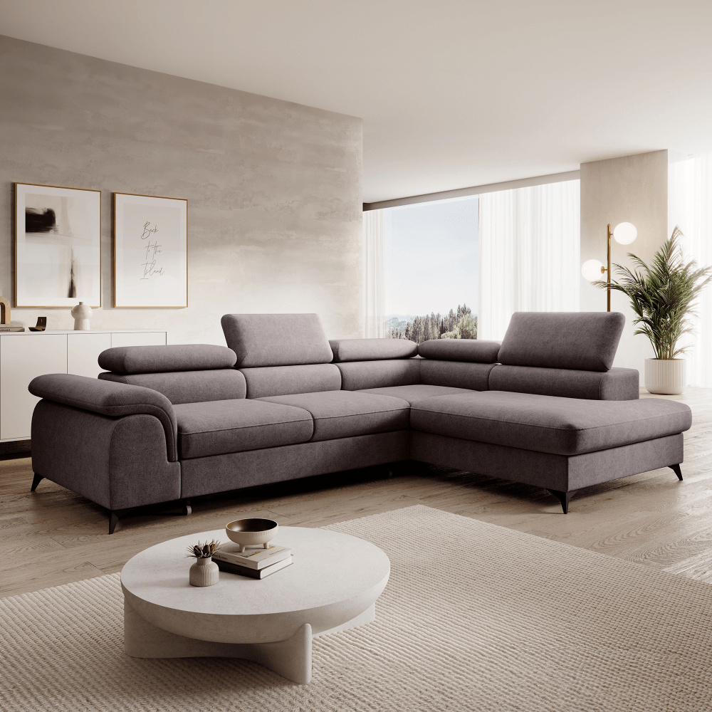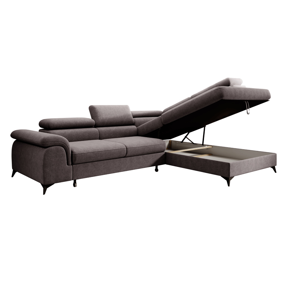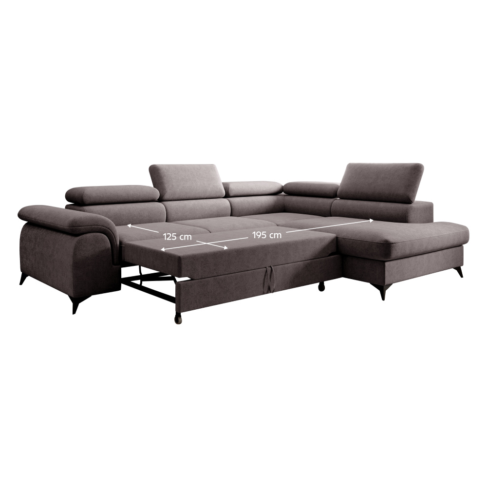 Materiál: látka Whisper 05 Oděruodolnost textilie podle testu Martindale: 100 000 oděrů Barva: sivohnědá Rozměry (ŠxHxV): 275x205x75/95 cm Plocha na spaní (ŠxD): 125x195 cm Výška sedu: 43 cm Hloubka sedu: 58 cm Rozměr sedáku: 140 cm Šířka otomanu: 105 cm Na nožičkách Materiál nožiček: kov Barva nožiček: černá Výška spodního prostoru od podlahy: 10,5 cm Výplň: pružina falista+pur pěna Rozkládací Celočalouněná Pravé provedení Tvar L Rohová S úložným prostorem 5 polohovatelných opěrek hlavy 5 stupňové polohování opěrek Dodáváno v demontu Možnost objednání v 6 barevných provedeních látky Whisper v ceně 36.390 Kč. Při individuální objednávce je třeba zaplatit 20% zálohu z dané částky. Po uhrazení zálohy bude Váš požadavek zadán do výroby. Dodací lhůta 6-8 týdnů.