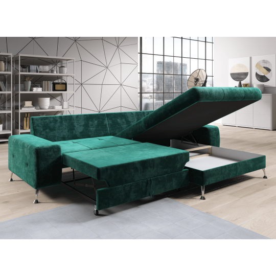 Rozkládací sedací souprava, smaragdová, pravá, VASAT ROH