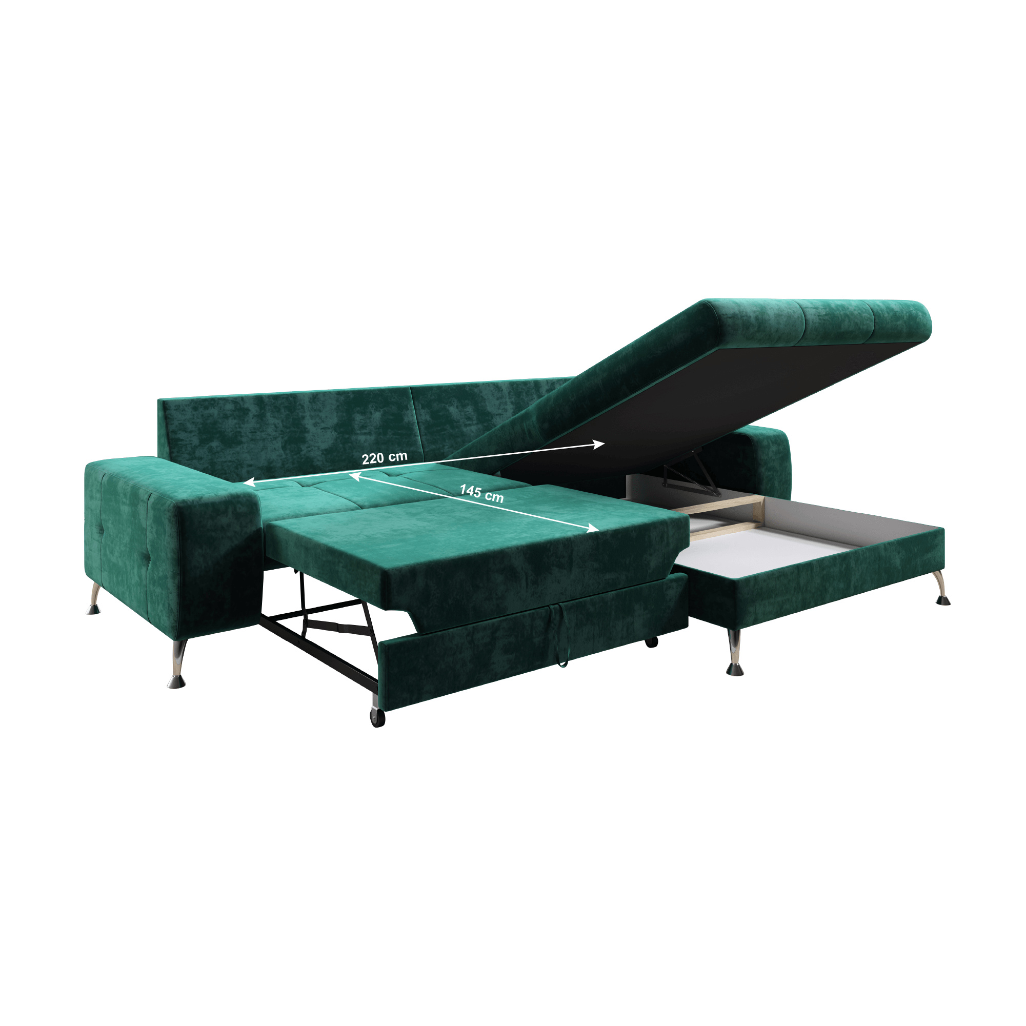 Rozkládací sedací souprava, smaragdová, pravá, VASAT ROH