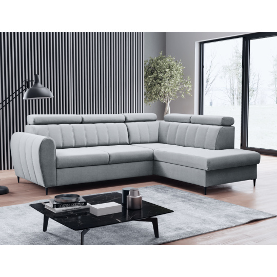 Rozkládací sedací souprava, světle šedá, pravá, KORIO L