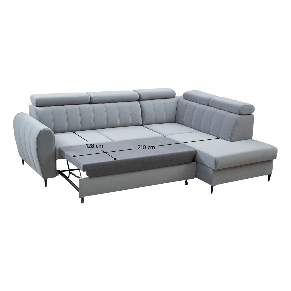 Rozkládací sedací souprava, světle šedá, pravá, KORIO L