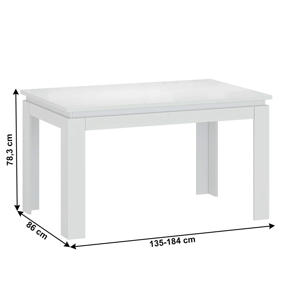 Rozkládací stůl, bílá, 135-184x86 cm, LINDY