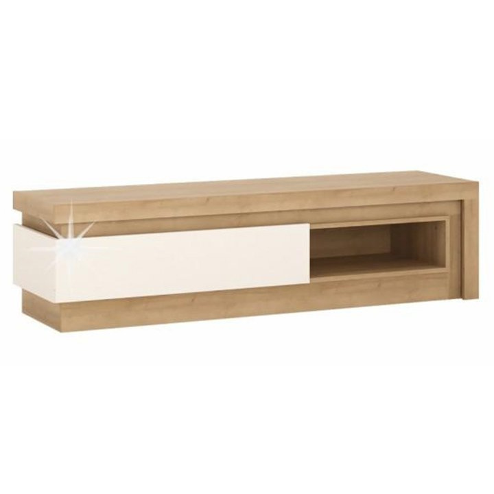 RTV stolek 02, dub riviéra / bílá s extra vysokým leskem, LEONARDO