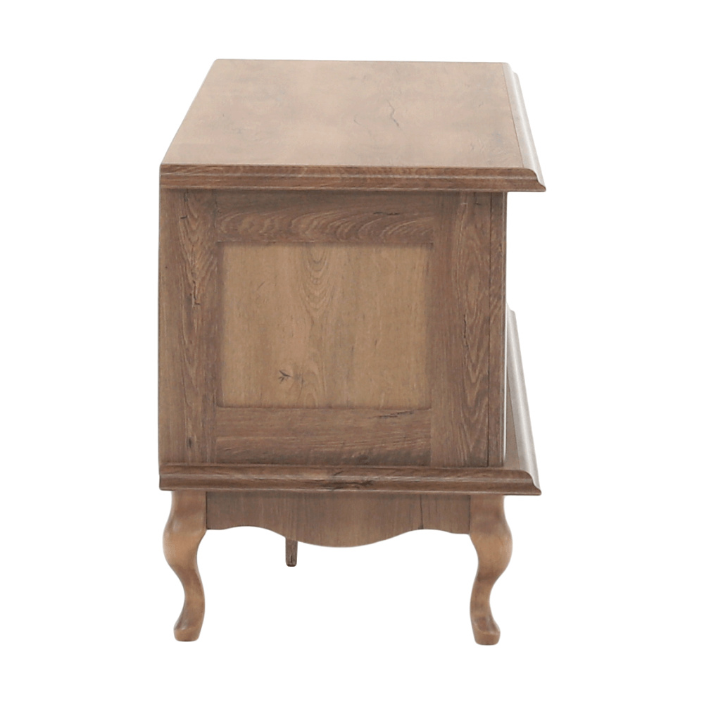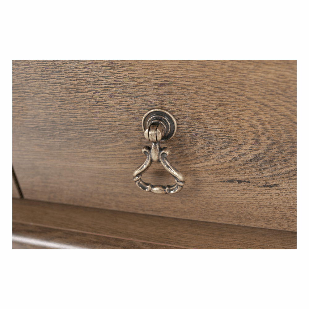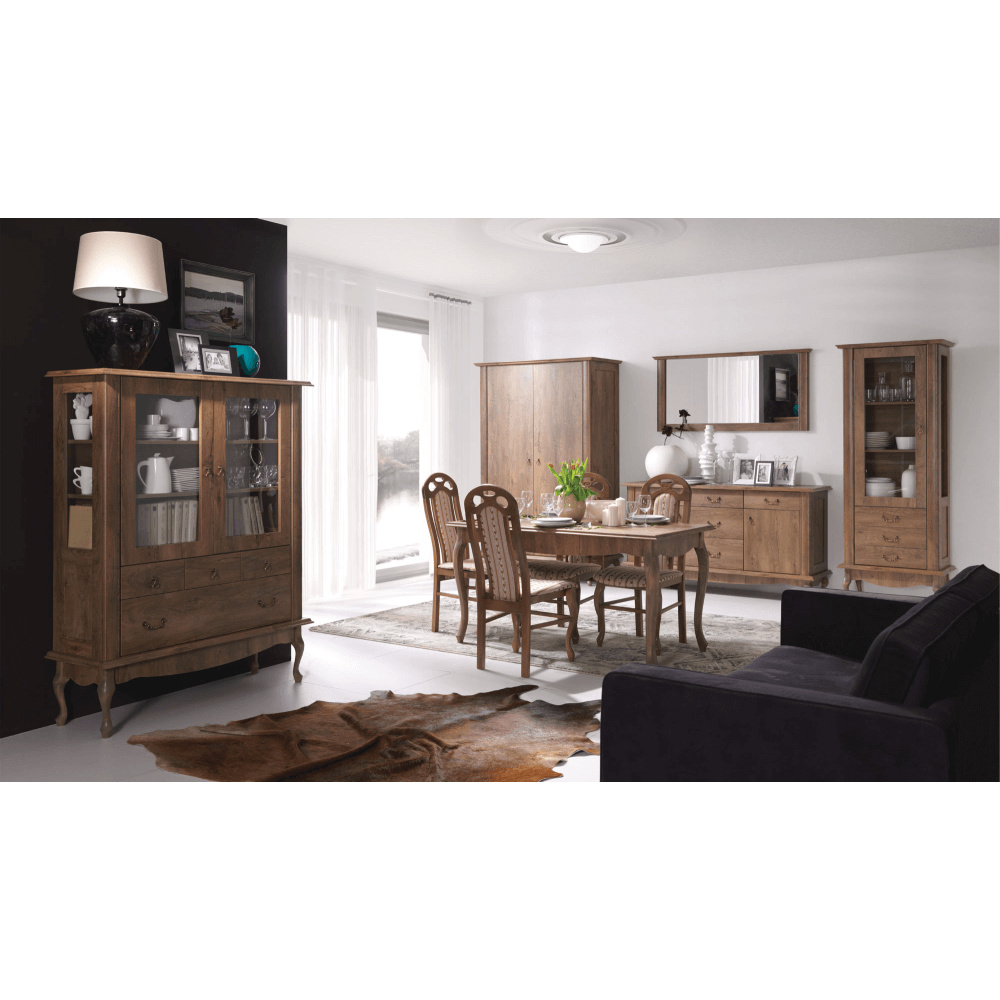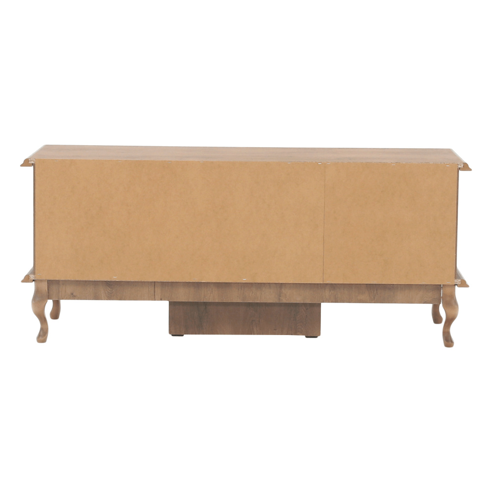 Materiál: DTD laminovaná / ABS hrany Barva: dub lefkas Rozměry (ŠxHxV): 144x47x60 cm Výška spodního prostoru od podlahy: 15 cm Tloušťka materiálu: 30 mm dva šuplíky Dvě jednodveřové skříňky police 3D efekt kovové úchytky Dřevěné nožičky ABS hrany barokní styl