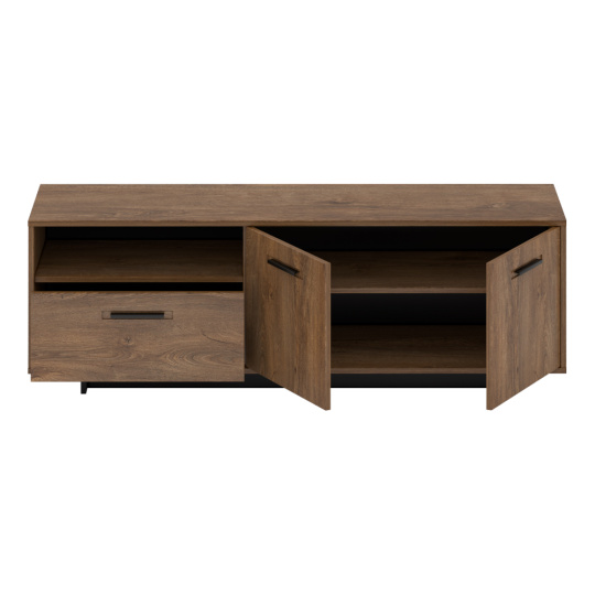 Materiál: DTD laminovaná / MDF fóliovaná Barva: dub bolzano / černá Rozměry (ŠxHxV): 153,7x42x51,2 cm Tloušťka materiálu: 16 mm 1 skříňka s policí 1 zásuvka Otevřený úložný prostor na podstavci Výška spodního prostoru od podlahy: 5 cm kovové úchytky originální design Krásná kresba dřeva Do tradičního i moderního interiéru Do obývacího pokoje, pracovny i studentského pokoje Dodávána v demontu