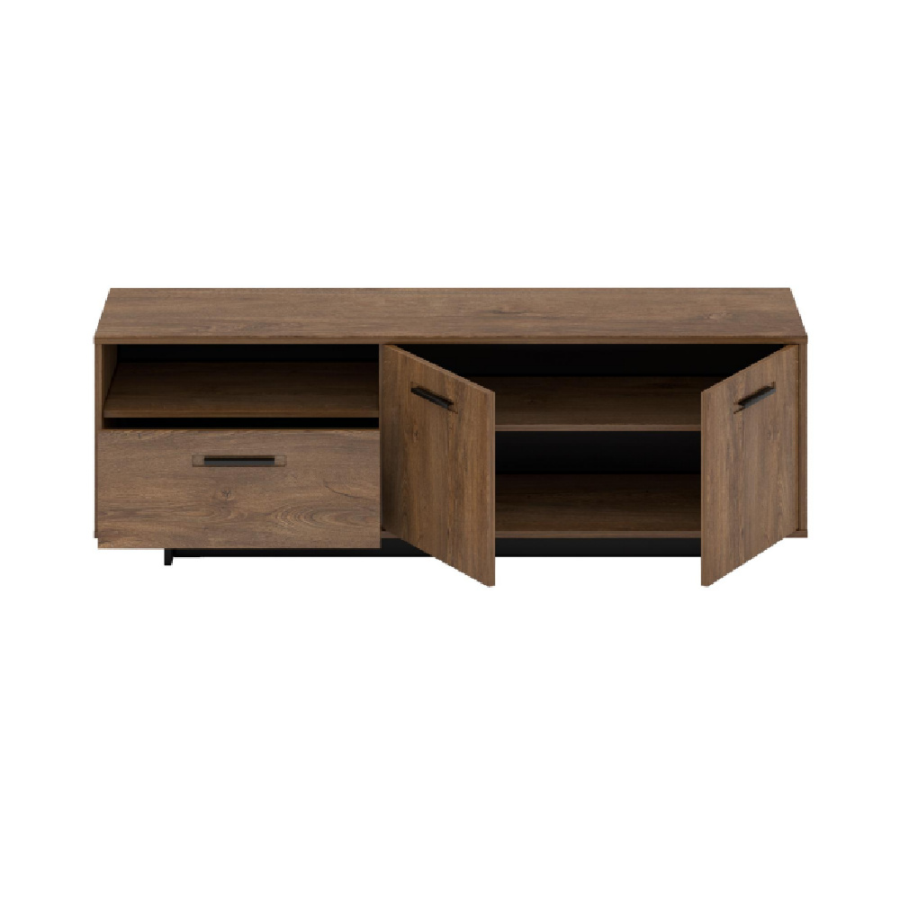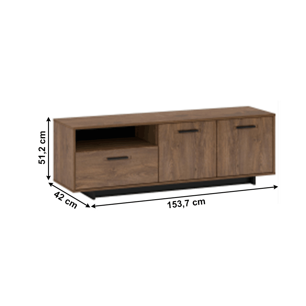 Materiál: DTD laminovaná / MDF fóliovaná Barva: dub bolzano / černá Rozměry (ŠxHxV): 153,7x42x51,2 cm Tloušťka materiálu: 16 mm 1 skříňka s policí 1 zásuvka Otevřený úložný prostor na podstavci Výška spodního prostoru od podlahy: 5 cm kovové úchytky originální design Krásná kresba dřeva Do tradičního i moderního interiéru Do obývacího pokoje, pracovny i studentského pokoje Dodávána v demontu