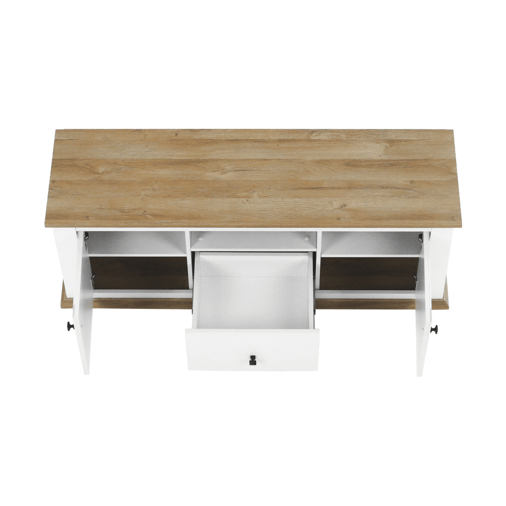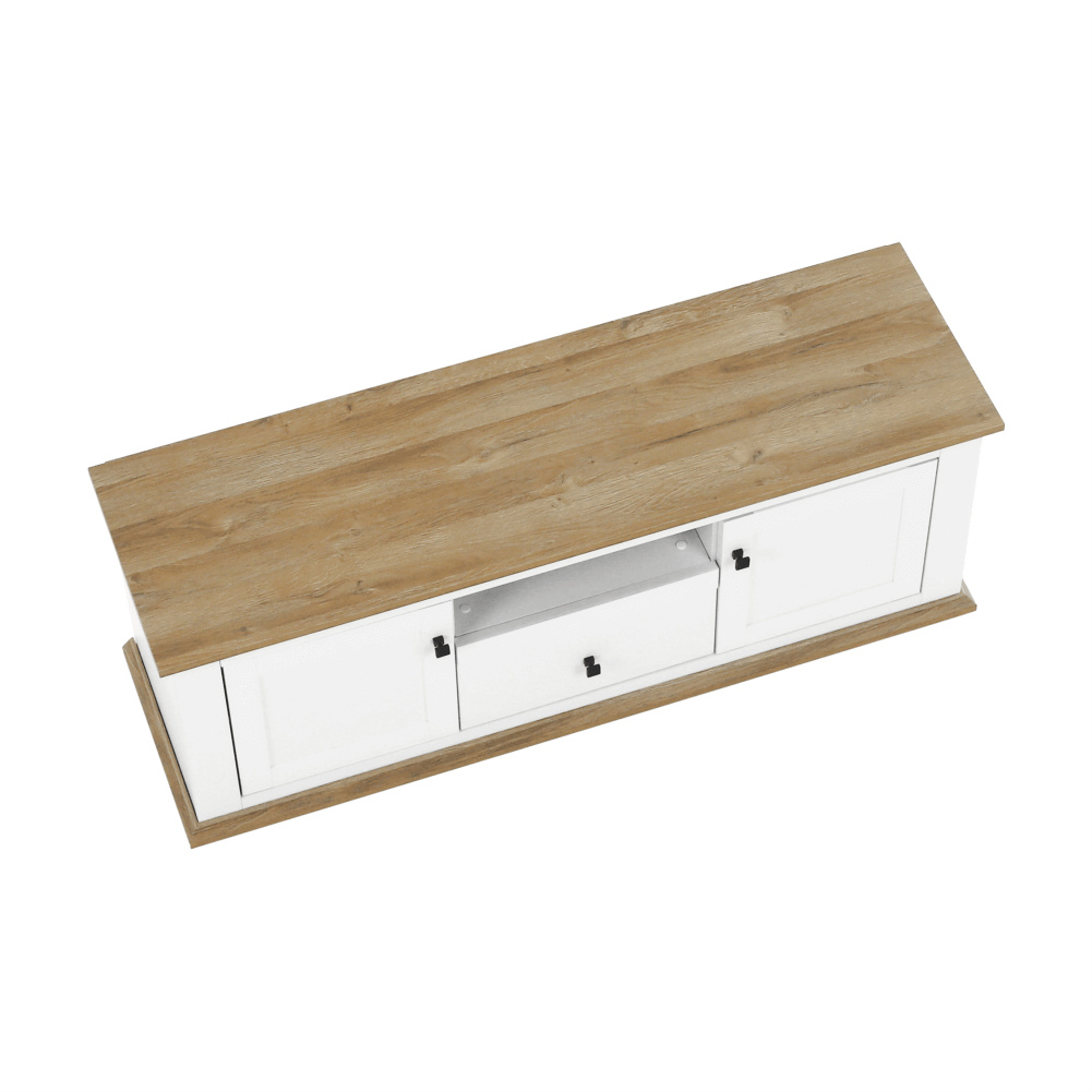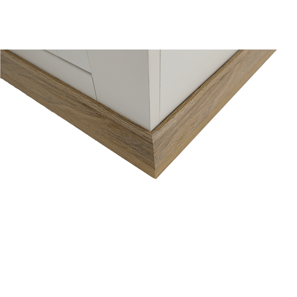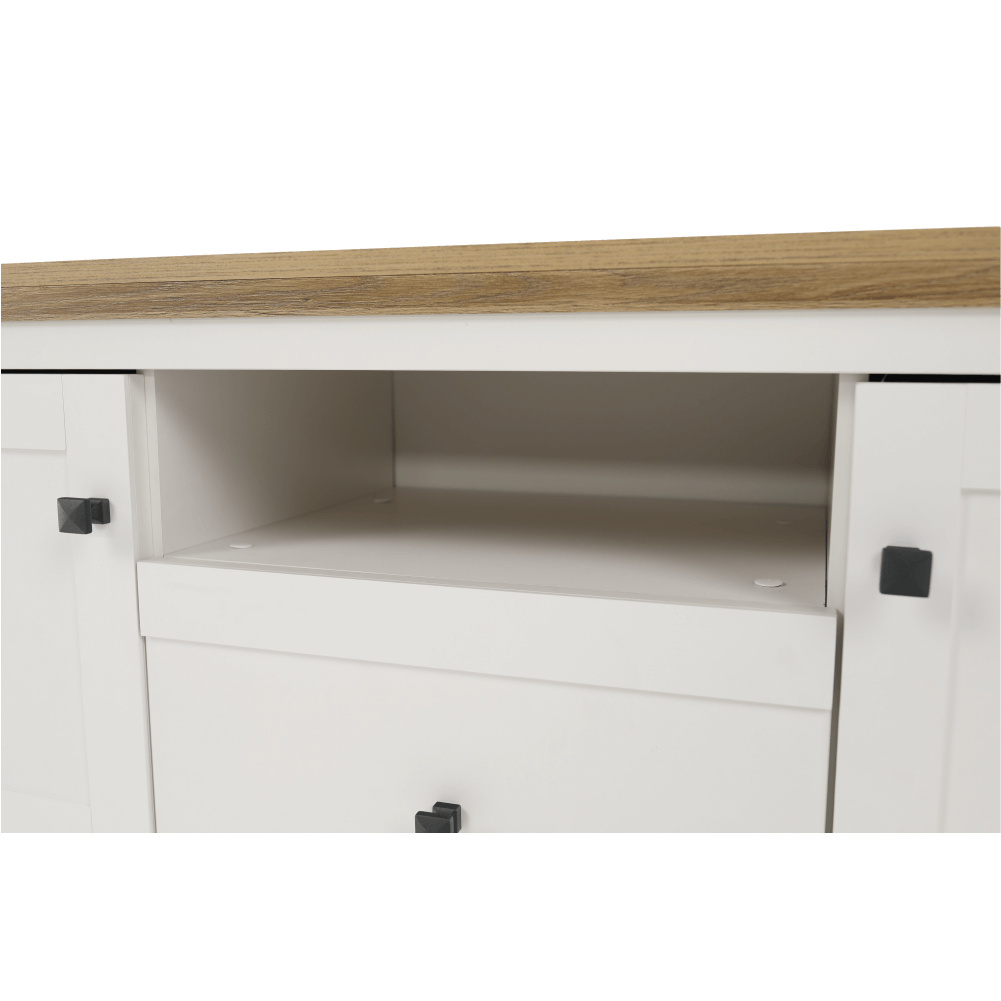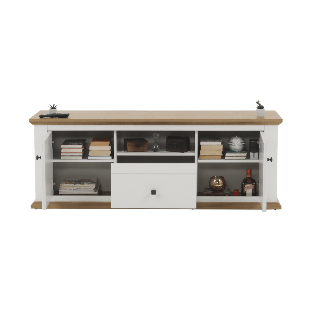 Materiál: DTD laminovaná / ABS hrany Barva: bílá / dub grand Rozměry (ŠxHxV): 150x40x55 cm Tloušťka materiálu: 40 mm dvoudveřová dvě skříňky Jeden šuplík S úchytkami S 3D efektem elegantní V provensálském stylu kovové úchytky Dodávané v demontu