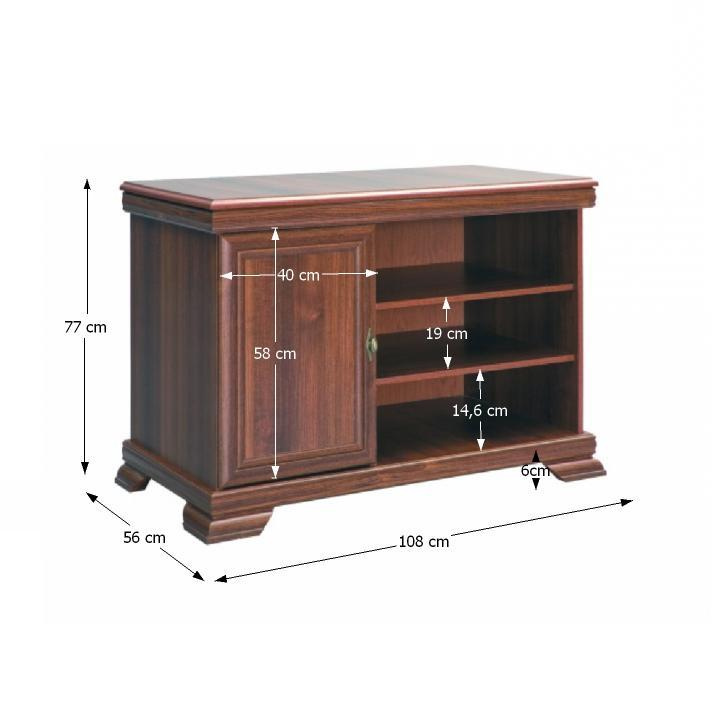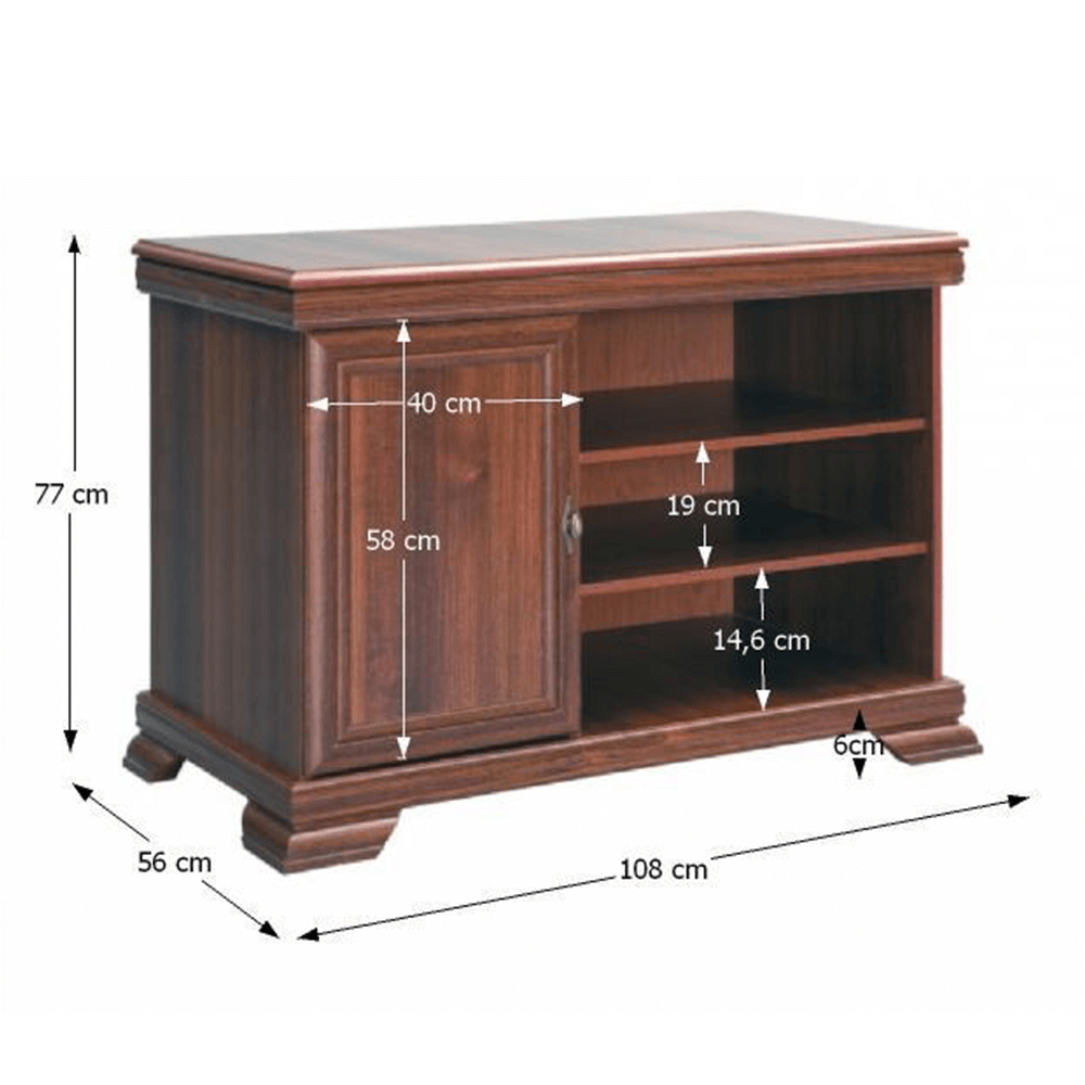RTV stolek, samoa king, KORA KRT Materiál: laminovaná DTD / MDF / kov Barva: samoa king. Rozměry ŠxHxV: 107x55,8x76,5 cm Tloušťka materiálu korpus: 15 mm Tloušťka materiálu vrchní desky: 22 mm Tloušťka materiálu dolní desky: 22 mm Výška spodního prostoru od podlahy: 10,5 cm Dodávané v demontu.