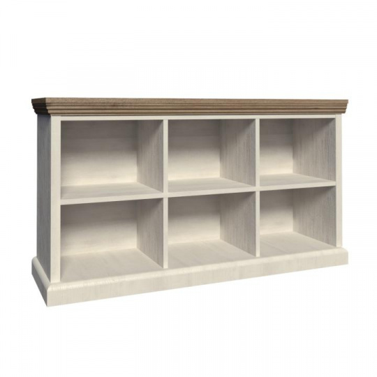 RTV stolek RN se šesti šuplíky otevřenými úložnými prostory z elegantního sektorového systému Royal v provensálském stylu. Vhodný na zařízení obývacích pokojů či ložnic. Materiál: korpus DTD laminovaná + ozdobné lišty. Barevné provedení: sosna skandinávská v kombinaci s dubem divokým. Rozměry ŠxHxV: 127x46x75 cm Tloušťka materiálu korpus: 15 mm Tloušťka materiálu vrchní desky: 22 mm Dodávané v demontu.