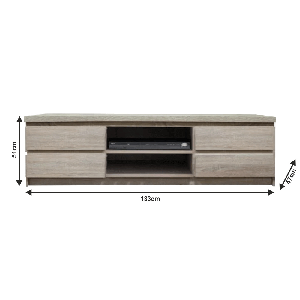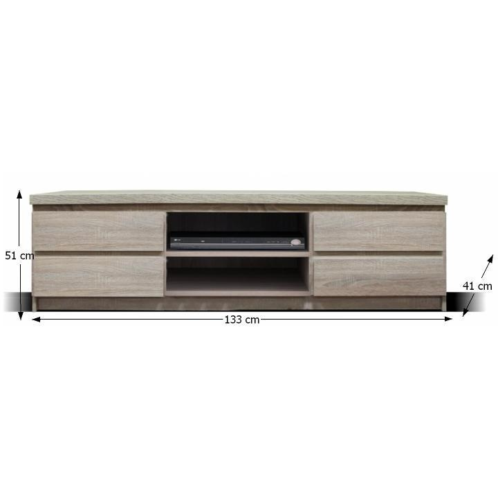 RTV stolek čtyřzásuvková, TYP 06. Materiál: DTD laminovaná, ABS hrany. Barevné provedení: dub sonoma. Rozměry ŠxHxV: 133x47x51 cm. Tloušťka materiálu korpus: 16 mm Tloušťka materiálu vrchní desky: 25 mm Dodávané v demontu.