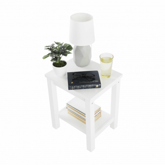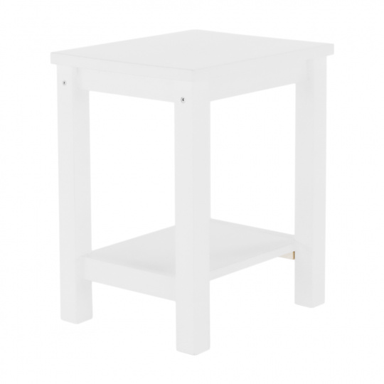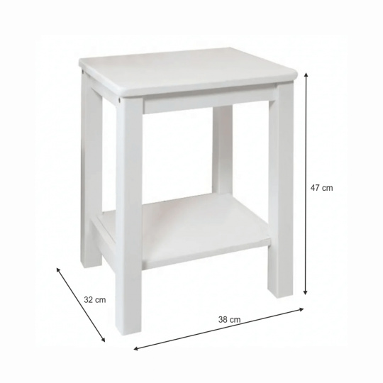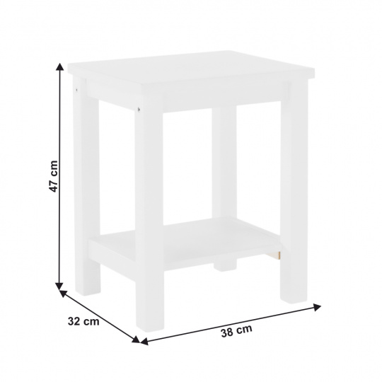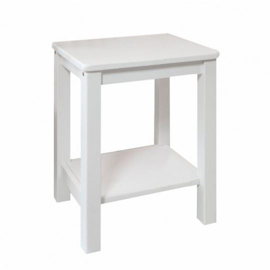 Noční stolek, FOSIL Materiál: masivní borovicové dřevo, Barva: bílá, Rozměry (ŠxHxV): 38x32x47 cm, Tloušťka materiálu nohou (ŠxH): 40x40 mm Výška nožiček: 45 cm