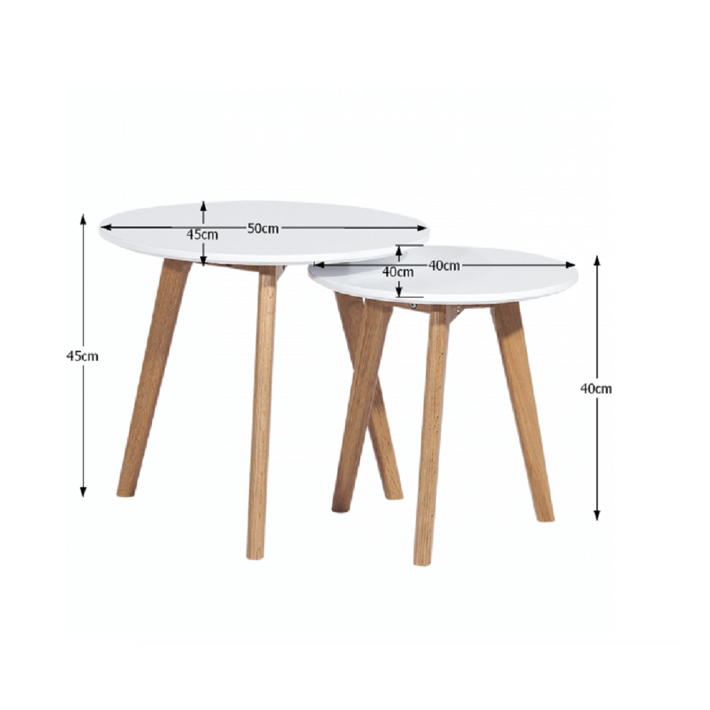 Stolek je kombinací MDF a dřeva Větší stolek (priemerxV): 50x45 cm Menší stolek (priemerxV): 40x40 cm Tloušťka materiálu: 18 mm Dodávané v demontu.