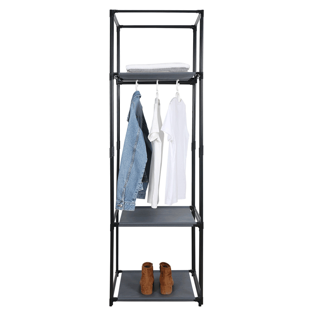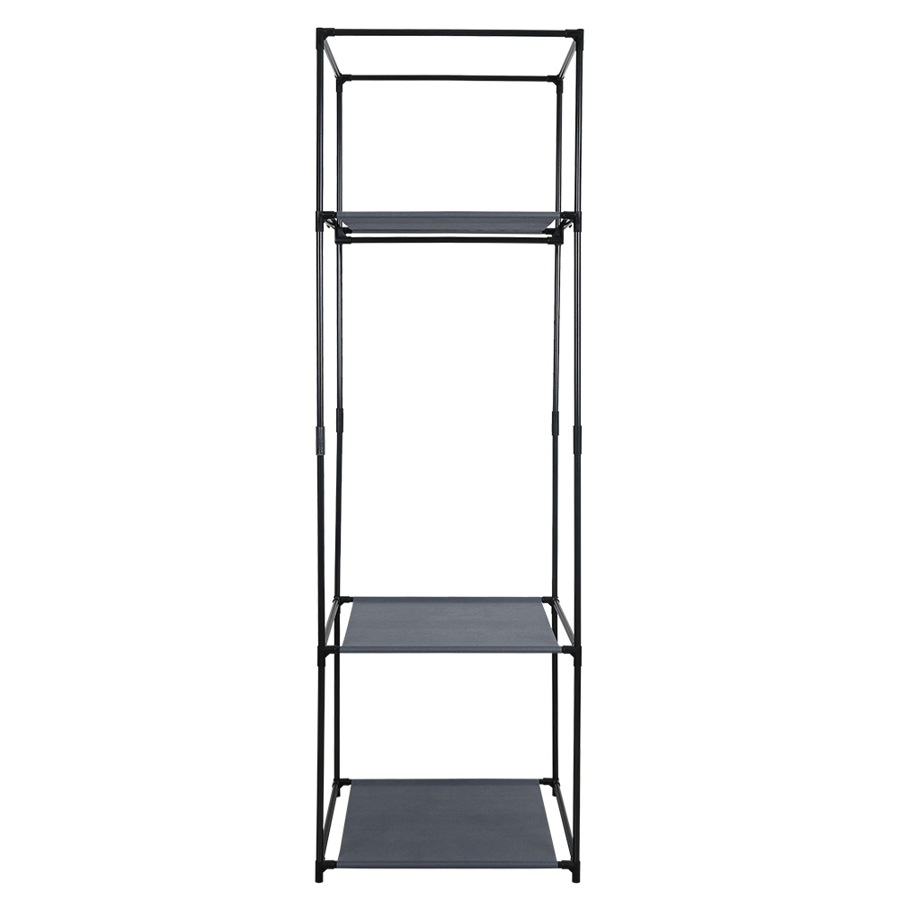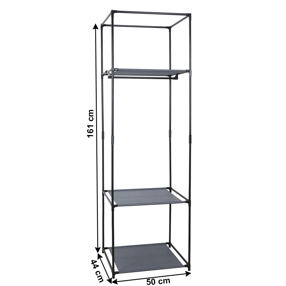 Materiál konstrukce: kov Barva: černá Materiál police: látka Barva: černá Rozměry (ŠxHxV): 50x44x161 cm Nosnost police: 3 kg Nutné rovnoměrné zatížení moderní design Praktický věšák na oblečení a doplňky 1 věšáková tyč, 3 police Vhodný do šatníku, předsíně, ložnice či studentského pokoje Dodávané v demontu