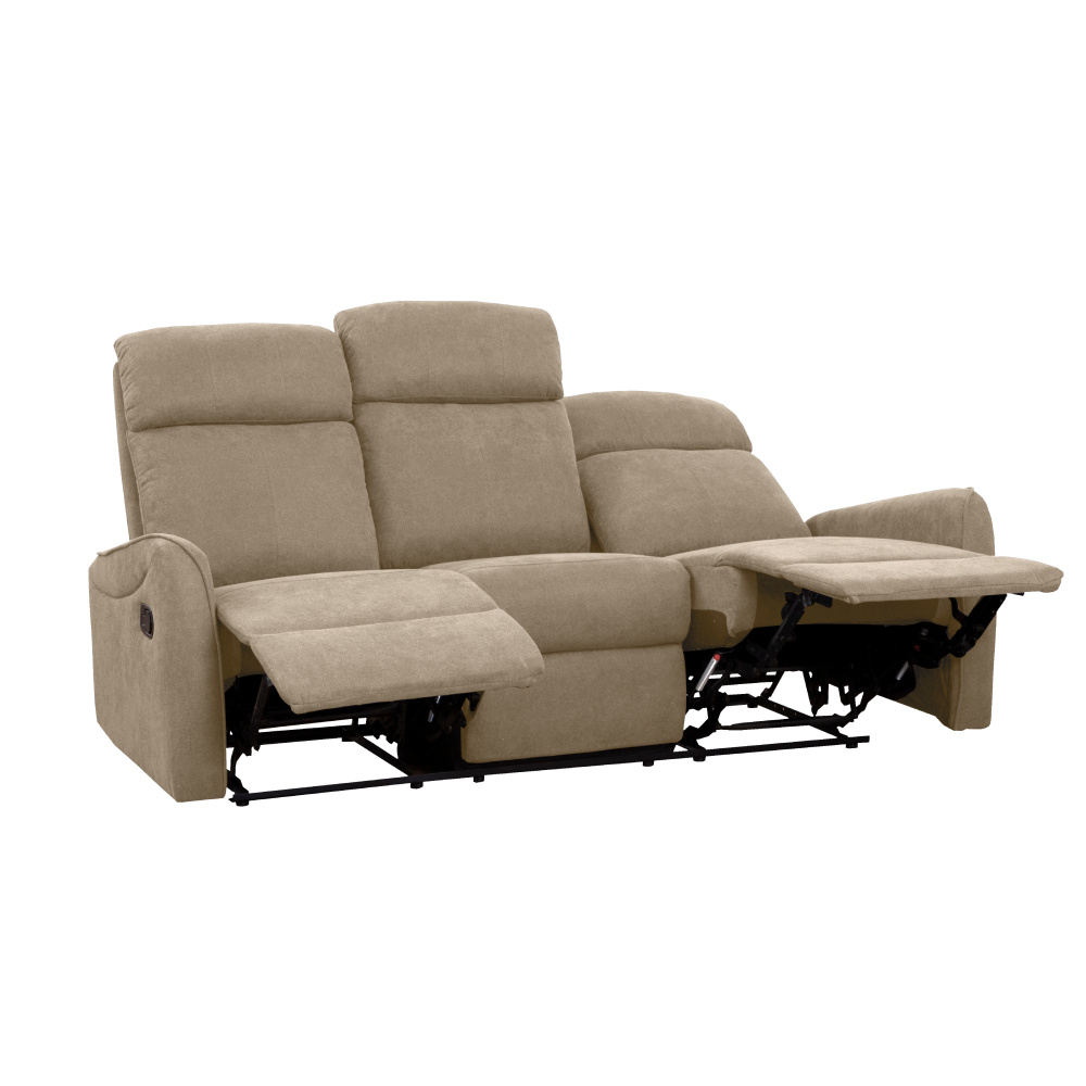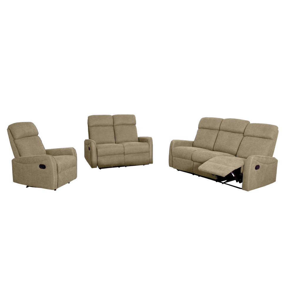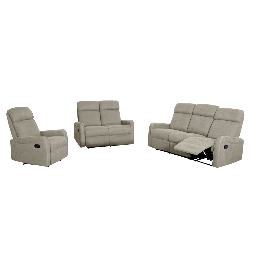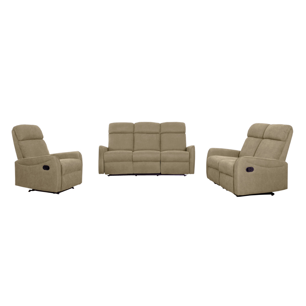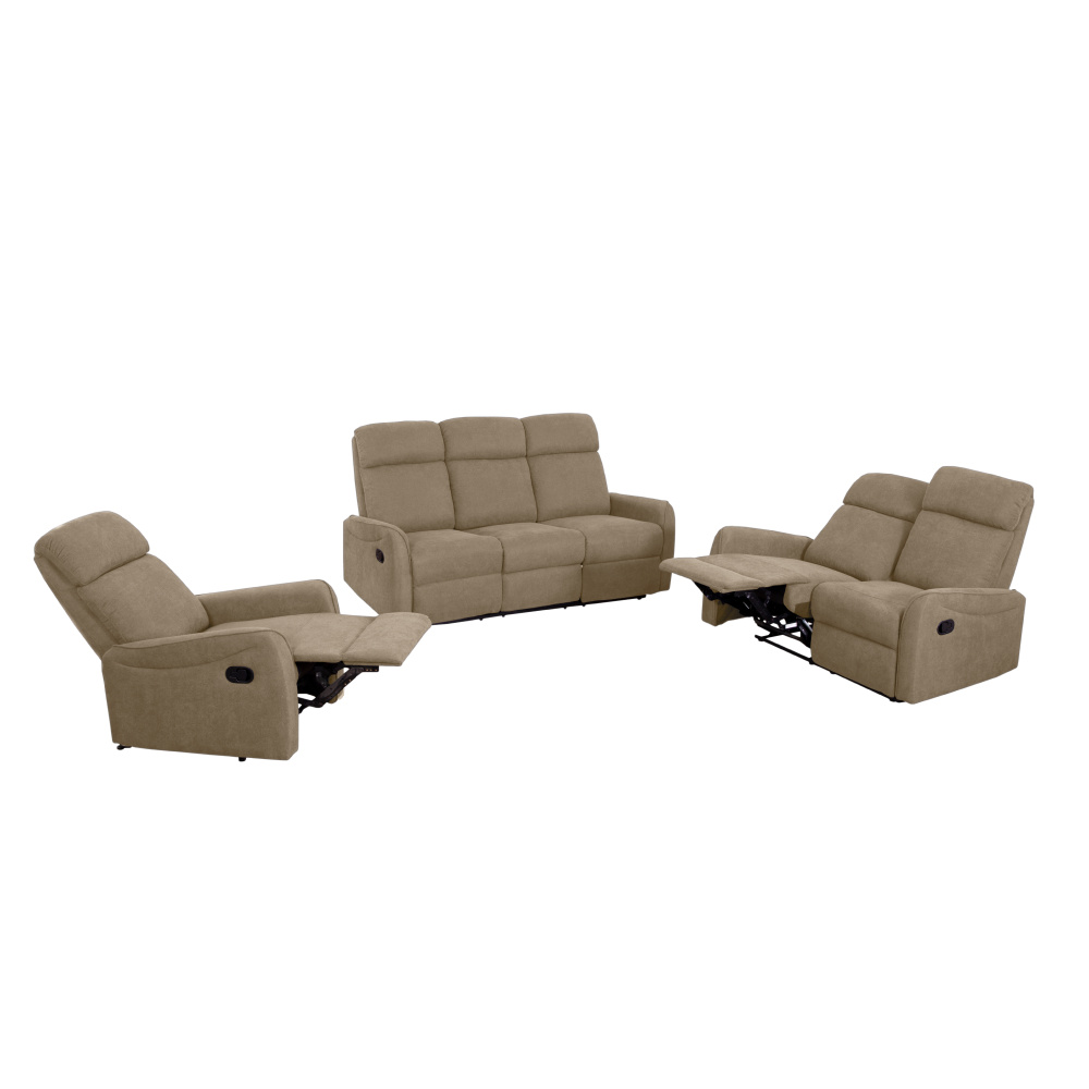 Materiál: látka/kov Oděruodolnost textilie podle testu Martindale: 20 000 oděrů Barva: šedohnědá Taupe Rozměry trojsedu (ŠxHxV): 184x89/128x98/102 cm Rozměry dvousedu (ŠxHxV): 127x89/128x98/102 cm Rozměry křesla (ŠxHxV): 71x89/128x98/102 cm Výška sedu: 46 cm Hloubka sedu: 51 cm Výška opěrky zad: 67 cm Výplň: PUR pěna 3-sed s funkcí polohování pravé a levé části 2-sed s funkcí polohování Křeslo je polohovací Mechanické polohování Podnož vysunete pomocí páčky Dřevěná konstrukce: eukalyptus Nosnost: 120 kg Dodáváno v demontu