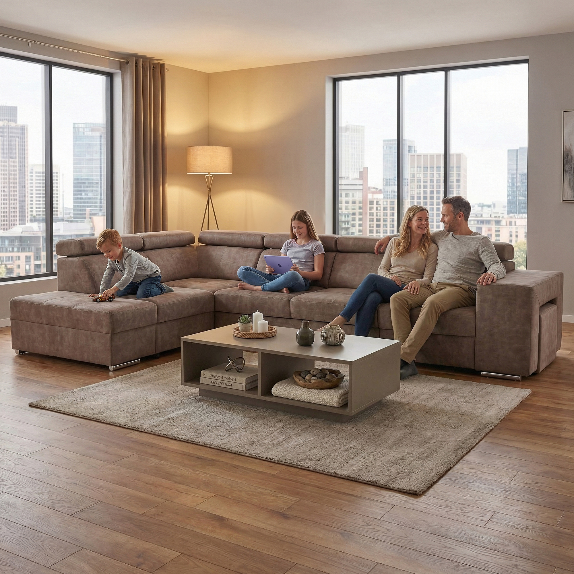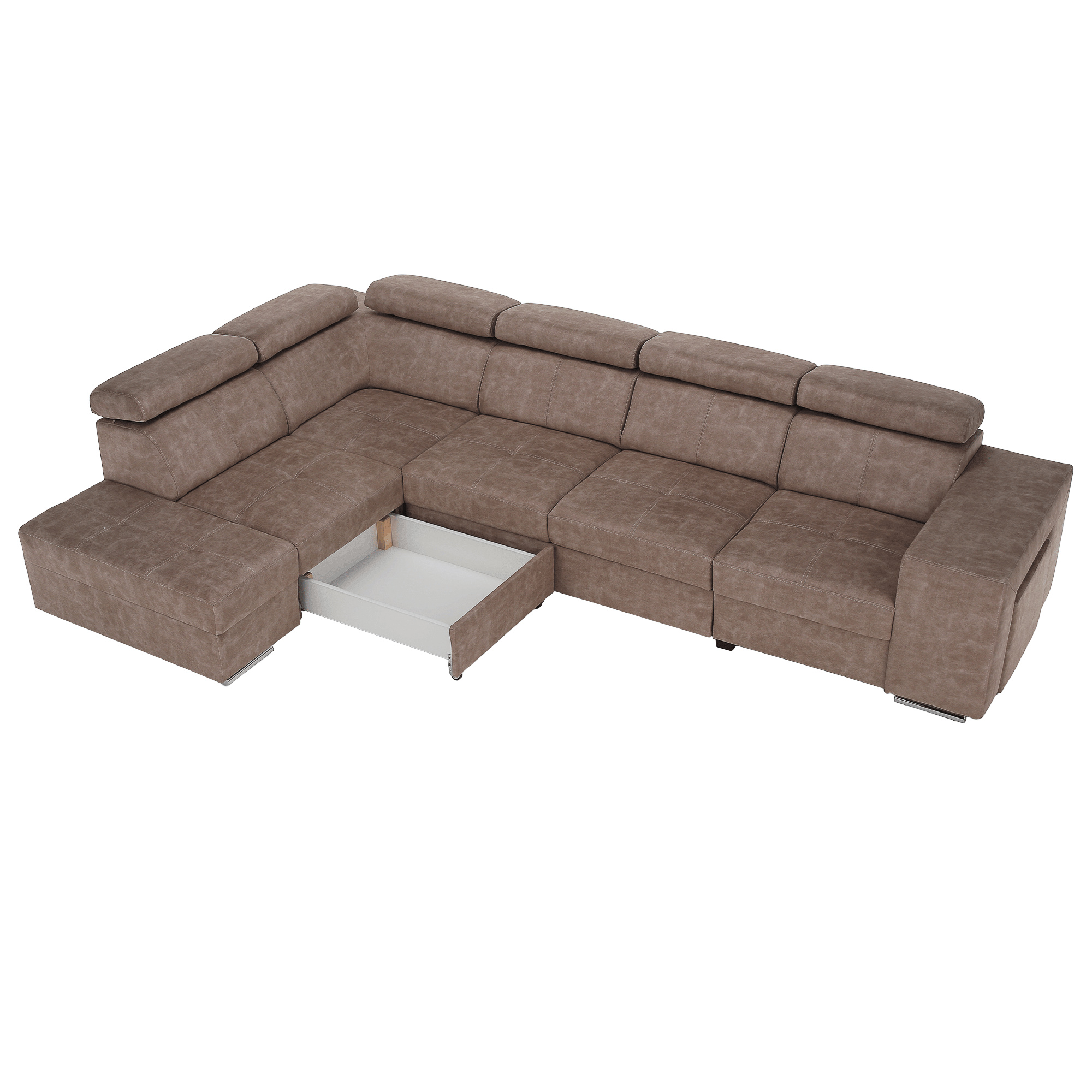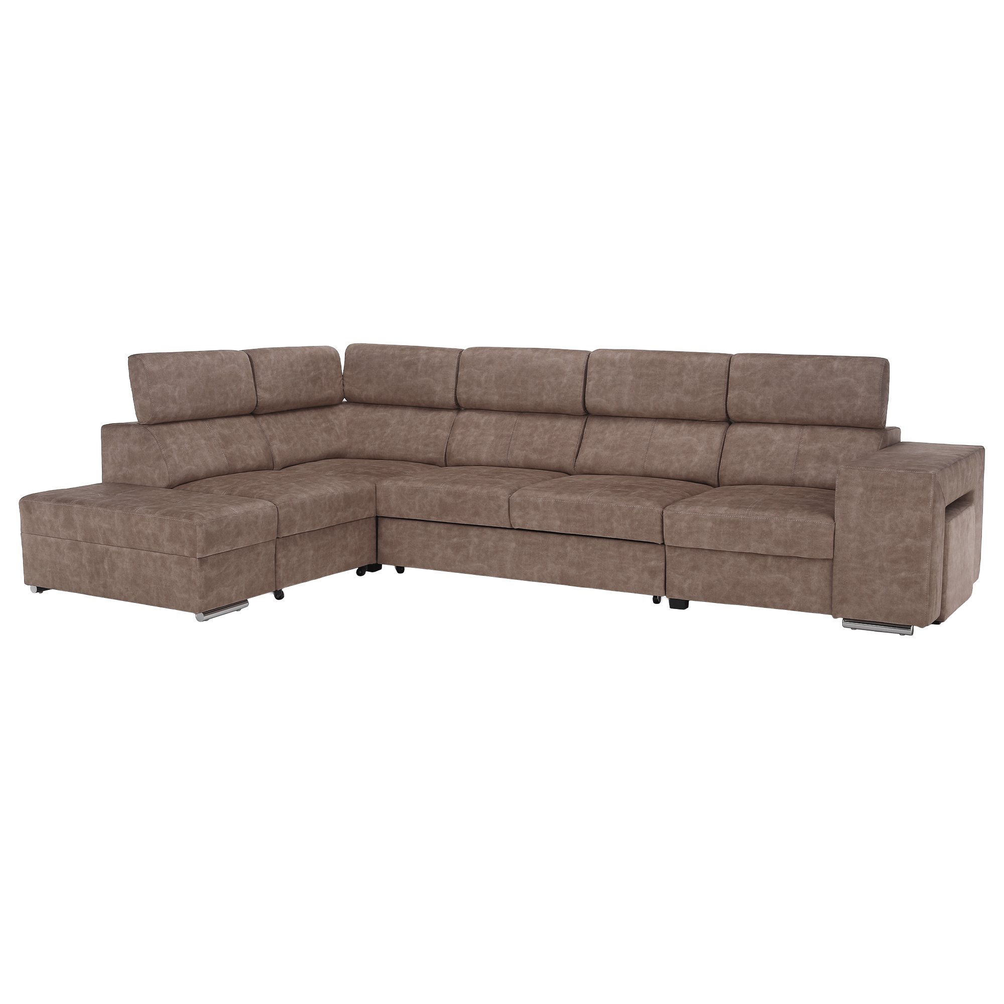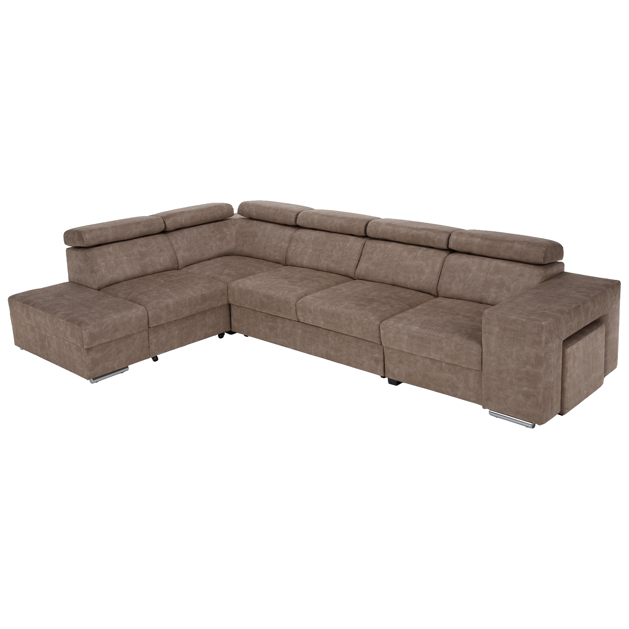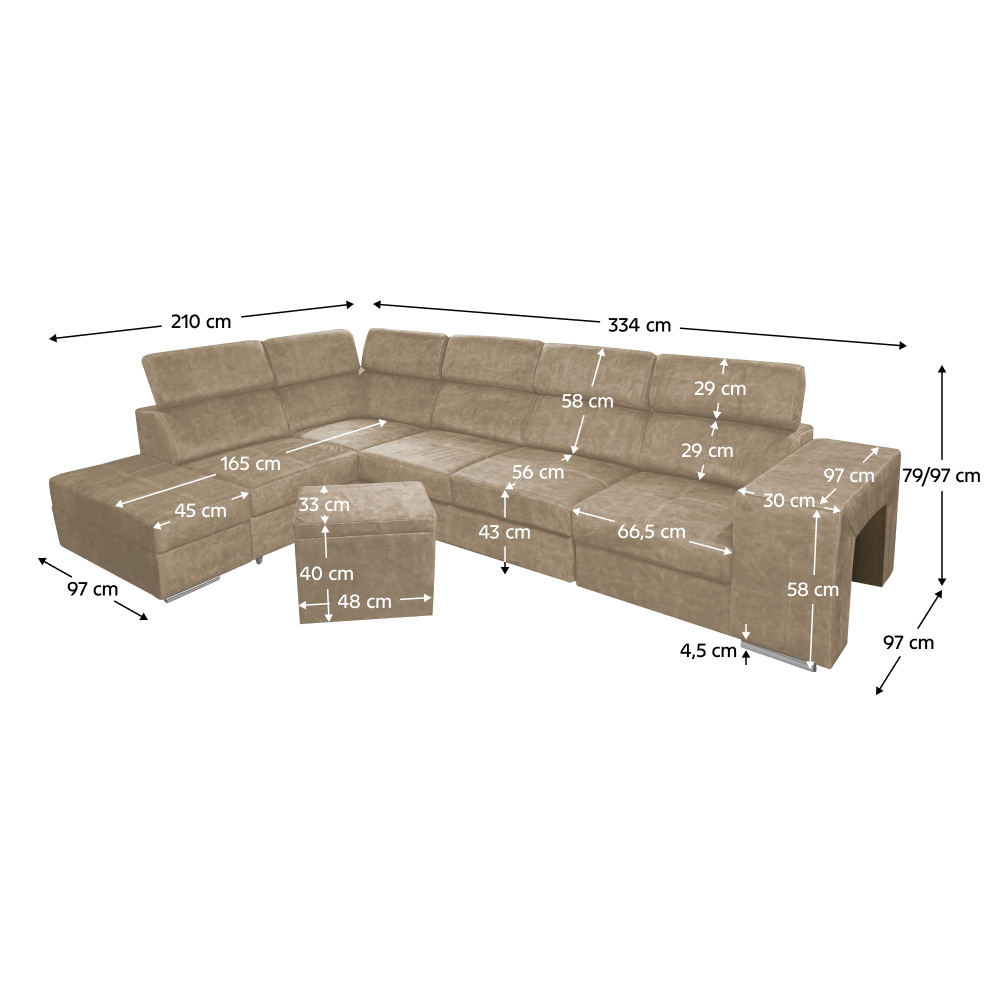 Materiál čalounění: látka Country 3 Oděruodolnost textilie podle testu Martindale: 65 000 oděrů Barva: béžová Materiál konstrukce: borové dřevo/bukové dřevo/laminátová deska Rozměry (ŠxHxV): 334x210x79/97 cm Plocha na spaní (ŠxD): 130x190 cm Výška sedu: 43 cm Hloubka sedu: 56 cm Rozměry otomanu (ŠxH): 97x165 cm Rozměry opěrky na ruku (ŠxHxV): 30x97x58 cm S taburetem Rozměry taburetu (ŠxHxV): 40x33x48 cm Celočalouněná Rozkládací Rohová S úložným prostorem Levé provedení Na nožičkách Barva nožiček: chromová Výška spodního prostoru od podlahy: 4,5 cm Polohovací opěrky hlavy 5 stupňové polohování opěrek Výplň:pružina falista/pur pěna/molitan Dodáváno v demontu Možnost objednání v 8 barevných odstínech látky Country v ceně 39 450 Kč. s dodací lhůtou 6-8 týdnů. Při individuální objednávce je třeba zaplatit 20% zálohu z dané částky. Po uhrazení zálohy bude Váš požadavek zadán do výroby.
