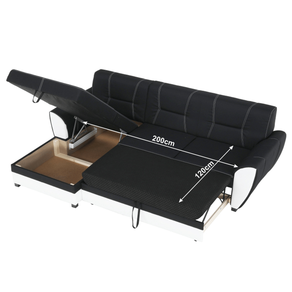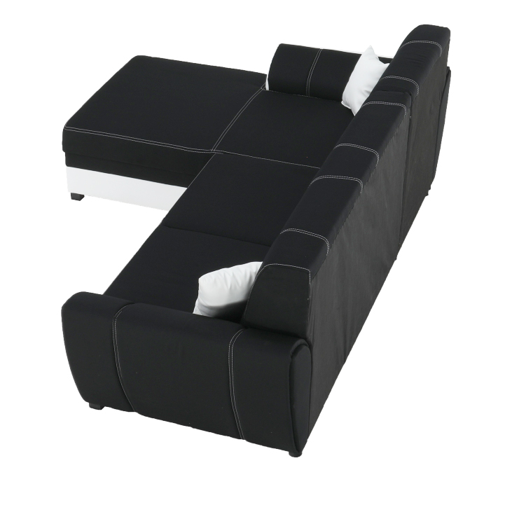Sedací souprava, ekokůže černá / látka tmavě šedá, levá, SANTIAGO U