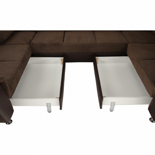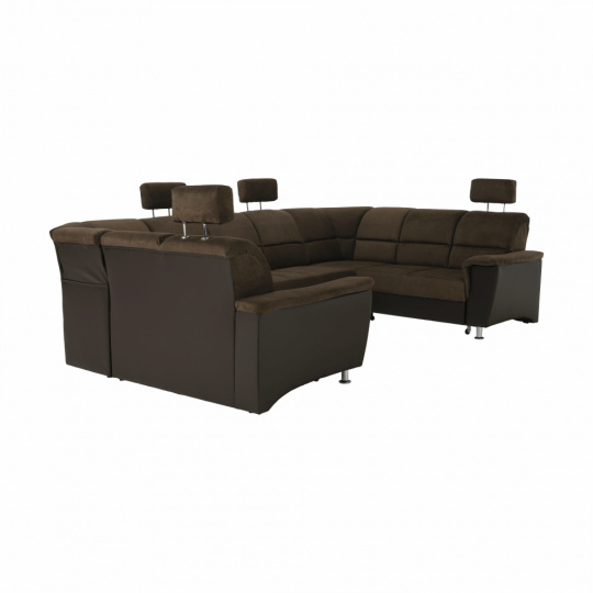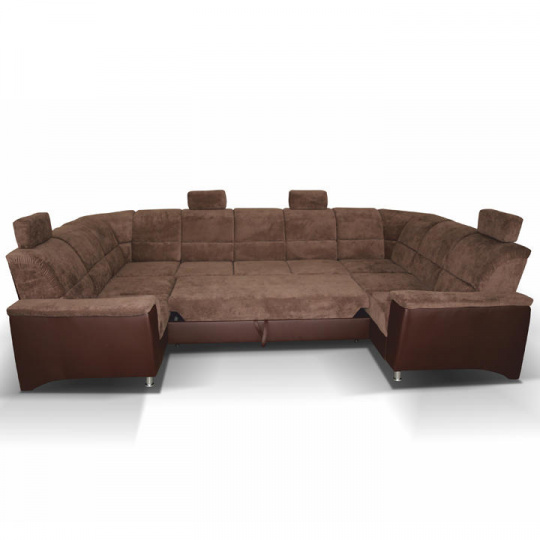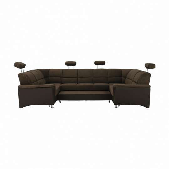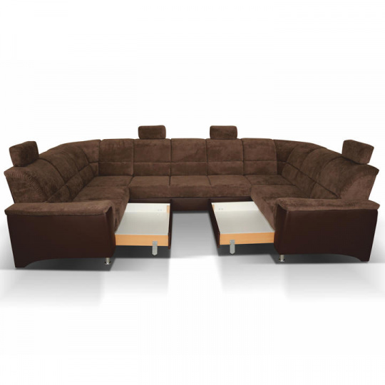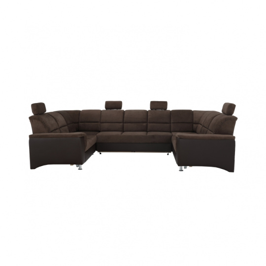 ;"Celočalouněná univerzální rozkládací sedací souprava ve tvaru U, SANTIAGO U VELKÝ Materiál: ekokůže / látka Oděruodolnost textilie Matrix podle testu Martindale: 72 000 oděrek Oděruodolnost ekokůže podle testu Martindale: 100 000 oděrek Barva: hnědá / Matrix 5 hnědá Rozměry (ŠxHxV): 338x217 / 217x86 / 106 cm Plocha na spaní (ŠxD): 116x225 cm Výška sedu: 41 cm Hloubka sedu: 53 cm Nosnost na osobu: 90 kg Manuální systém rozkladu Výška spodního prostoru od podlahy: 10 cm Nosnost: 90 kg Dodávané v demontu. Možnost objednání v 6 barevných provedeních látky Matrix a v 6 provedeních ekokůže: roh U velký v ceně 41.950 Kč, křeslo - 9.890 Kč, taburet - 3.290 Kč Při individuální objednávce je třeba zaplatit 20% zálohu z dané částky. Po uhrazení zálohy bude Váš požadavek zadán do výroby. Doba dodání 6-8 týdnů. Váš výběr poznamenejte do poznámky v objednávce.
